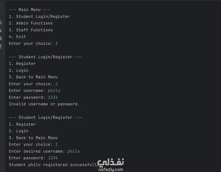 يسعدني عرض هذا المشروع ضمن معرض أعمالي على موقع مستقل، حيث قمت بتطوير نظام إدارة كافيتريا للجامعة باستخدام لغة Java وتطبيق مبادئ البرمجة كائنية التوجه (OOP). يهدف النظام إلى تسهيل عملية إدارة الطلبات داخل الكافيتريا، من خلال تنظيم قائمة المنتجات، تسجيل الطلبات، وحساب الفواتير بشكل دقيق وسريع. يعتمد المشروع على تصميم منظم وقابل للتطوير، حيث تم استخدام مفاهيم الـ OOP مثل Classes، Inheritance، Encapsulation، وPolymorphism لضمان كود نظيف وسهل الصيانة. مميزات المشروع - إدارة قائمة المنتجات (إضافة / تعديل / حذف) - تسجيل طلبات الطلاب بسهولة - حساب إجمالي الطلب بشكل تلقائي - تصميم كود منظم باستخدام OOP - قابلية التوسع وإضافة مميزات جديدة التقنيات المستخدمة - Java - Object-Oriented Programming (OOP) - Data Structures