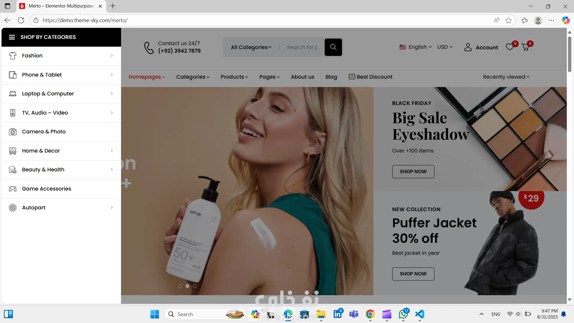موقع تجاره الكتروني يخدم اكتر من فئه ويوجد به العديد من الصفحات