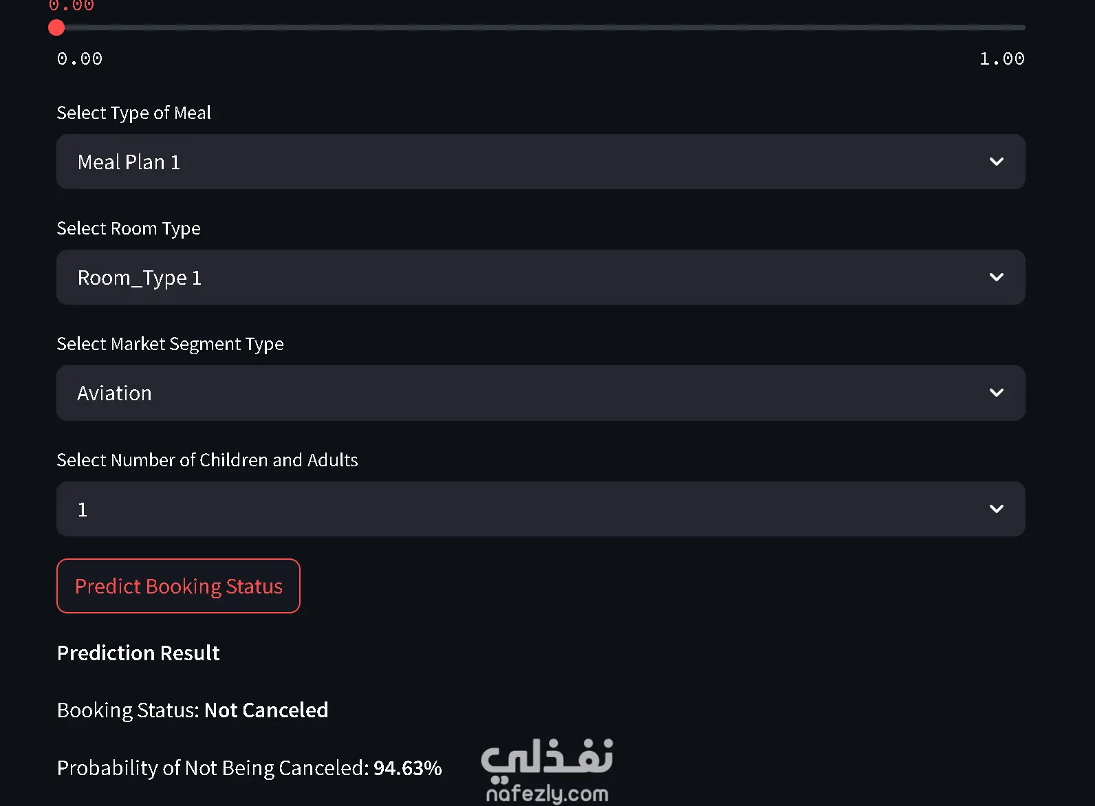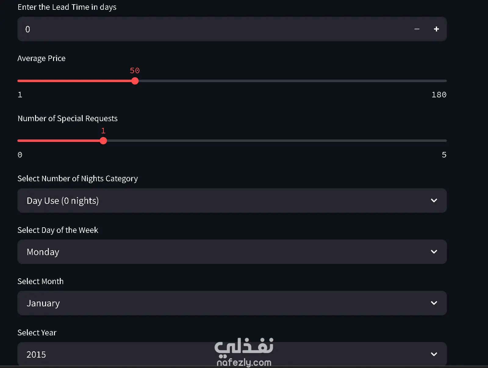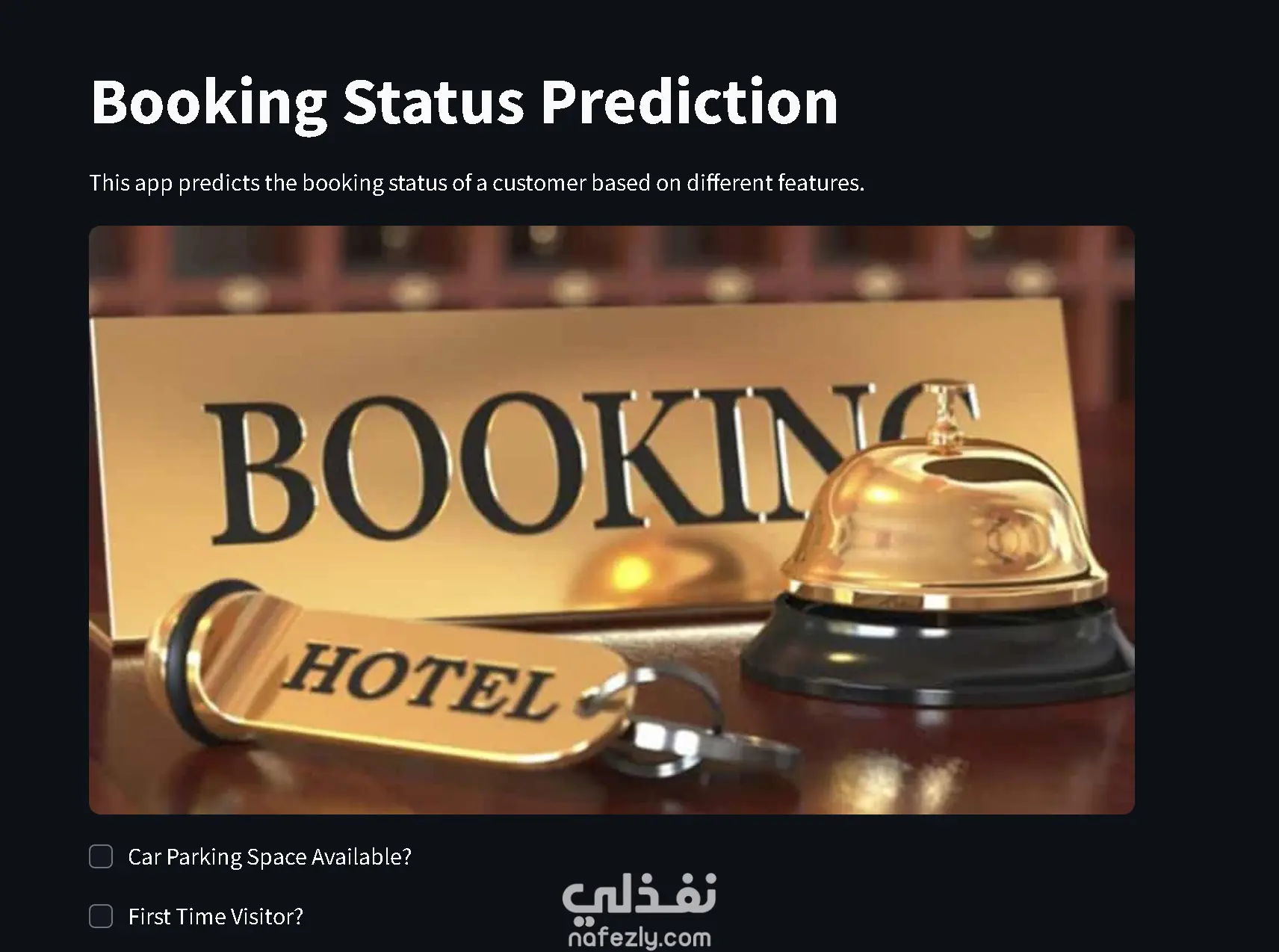 قمت بتطوير نموذج Machine Learning للتنبؤ بإمكانية إلغاء حجز الفندق قبل موعد الوصول. الهدف من المشروع هو مساعدة الفنادق على تقليل الخسائر الناتجة عن إلغاء الحجوزات والتخطيط بشكل أفضل لإدارة الغرف. بدأت بتنظيف البيانات ومعالجة القيم المفقودة وتحويل البيانات الفئوية إلى بيانات رقمية، ثم قمت بعمل تحليل استكشافي للبيانات لاكتشاف العوامل التي تؤثر على إلغاء الحجز. بعد ذلك تم تدريب نموذج تصنيف للتنبؤ بما إذا كان الحجز سيتم إلغاؤه أم لا. كما قمت بإنشاء واجهة بسيطة لتمكين المستخدم من إدخال بيانات الحجز والحصول على نتيجة التوقع.