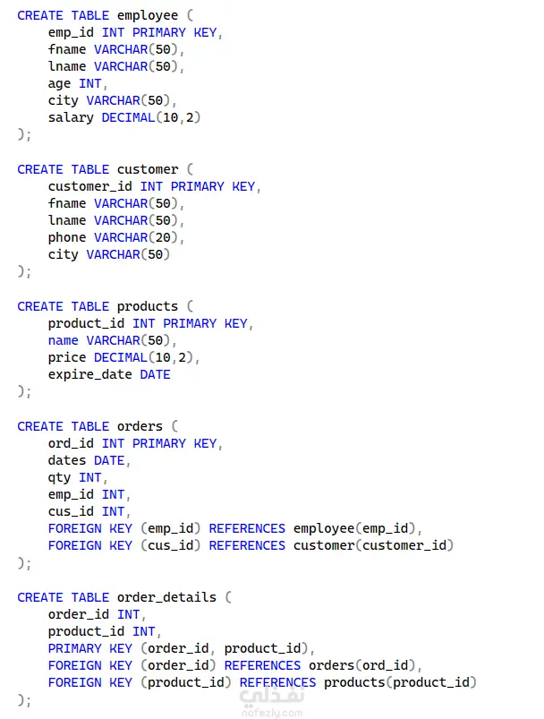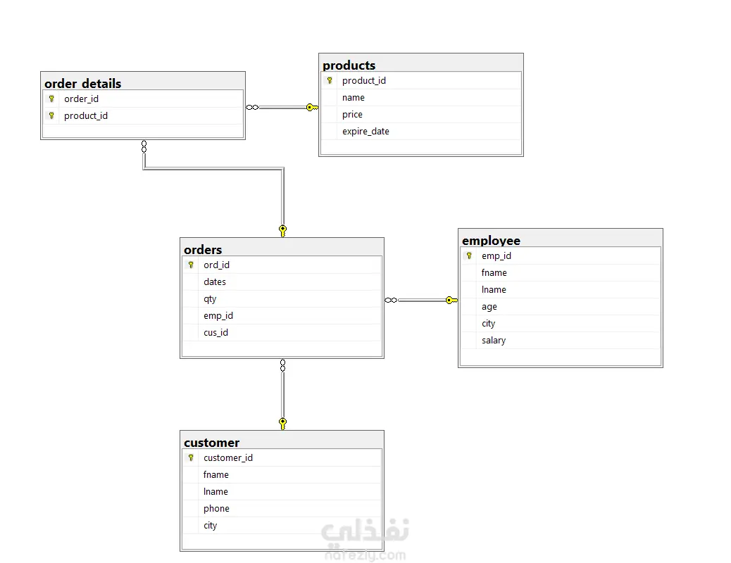 تصميم وتنفيذ قاعدة بيانات لإدارة الطلبات والمبيعات