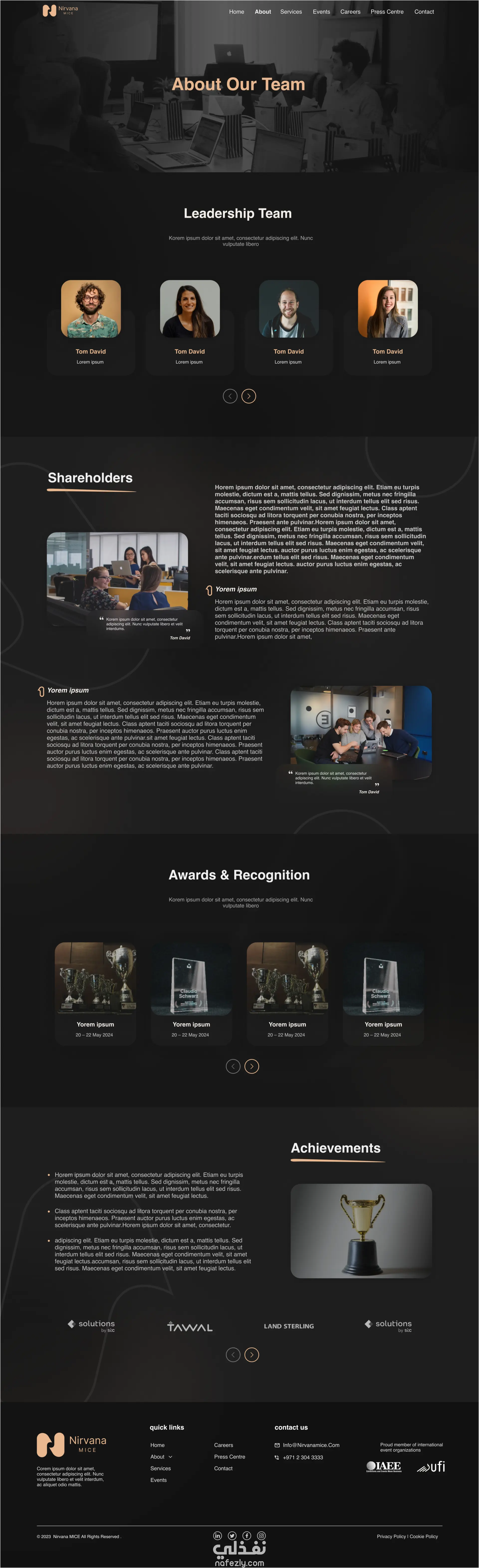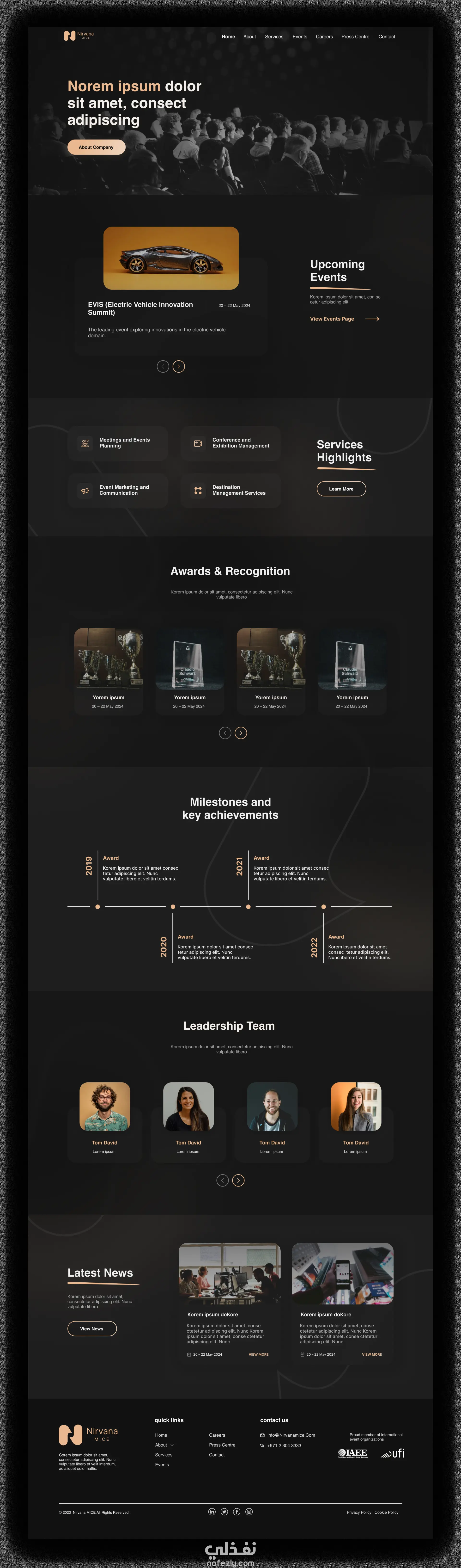 تصميم واجهة موقع لشركة تنظيم الفعاليات والمعارض – Nirvana