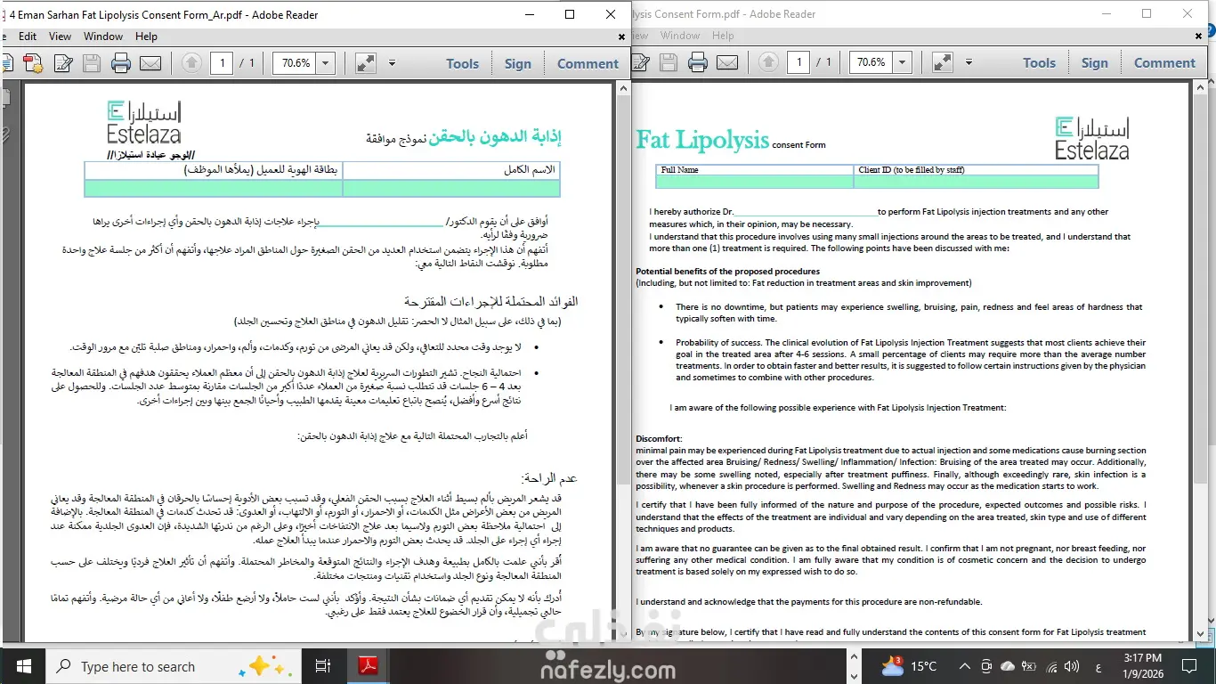 يعرض هذا النموذج ترجمة نموذج موافقة طبية (Consent Form) بدقة عالية، مع الحفاظ على المعنى القانوني والطبي للنص. أحرص على ترجمة المصطلحات بشكل واضح ودقيق لضمان فهم المريض الكامل للإجراء والمخاطر المحتملة، مع الحفاظ على الصياغة الرسمية المطلوبة في هذا النوع من المستندات. هذا النوع من الترجمة مناسب للمراكز الطبية، العيادات، والمستندات القانونية الطبية التي تتطلب دقة عالية ووضوح.