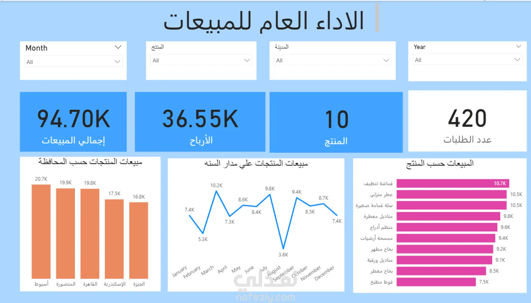 السلام عليك ولاحمة الله وبركاته, كثير من الشركات وأصحاب المشاريع يمتلكون كميات كبيرة من البيانات مثل بيانات المبيعات أو التسويق أو المخزون، لكن التحدي الحقيقي يكون في تنظيم هذه البيانات وفهمها واستخراج أهم المؤشرات منها. وهنا يأتي دور تحليل البيانات. بعد تنفيذ الخدمة ستحصل على: داش بورد تفاعلية تعرض أهم المؤشرات والرسوم البيانية مع تطبيق كافة المعادلات والتنسيقات اللازمة وطريقة الاستشارة ستكون عبر المراسلة في الطلب ومن الممكن ان يكون هناك اتصال عبر برنامج زووم ان كنت تريد في المزيد من الاستفسار او شرح او بعض التعديلات لبعض النقط. الخدمة مناسبة لتحليل أنواع مختلفة من البيانات مثل: بيانات المبيعات – بيانات التسويق – بيانات الأداء – بيانات العملاء – أو أي نوع آخر من البيانات التي تحتاج إلى تحليل وتنظيم. ملحوظه: تم عرض التصاميم بعد جمع البيانات من العملاء