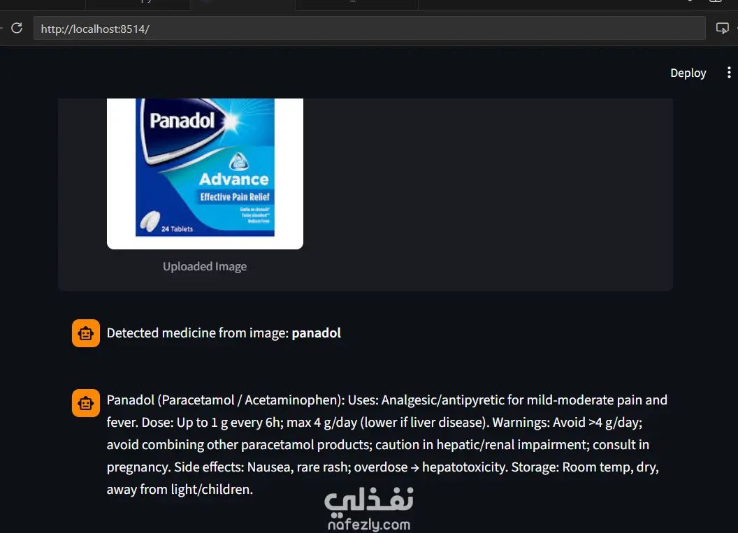 شات بوت ذكي متخصص في الصيدلة والأدوية، يقدّم معلومات عامة عن الأدوية، استخداماتها، والأنواع المتاحة بطريقة طبيعية وسلسة، دون تقديم أي تشخيص طبي أو جرعات علاجية. 🔹 مميزات البوت: البحث عن الأدوية ومعرفة وصفها العام. تقديم نصائح عامة حول التخزين والتحذيرات الأساسية. قراءة صور الأدوية والروشتات المكتوبة بخط اليد باستخدام تقنيات OCR. إمكانية ربط البوت بسهولة مع أي موقع ويب. تم تطوير المشروع باستخدام تقنيات الذكاء الاصطناعي، الـ NLP، وOCR، ويشمل الكود الكامل مع شرح مبسط لكيفية عمله.