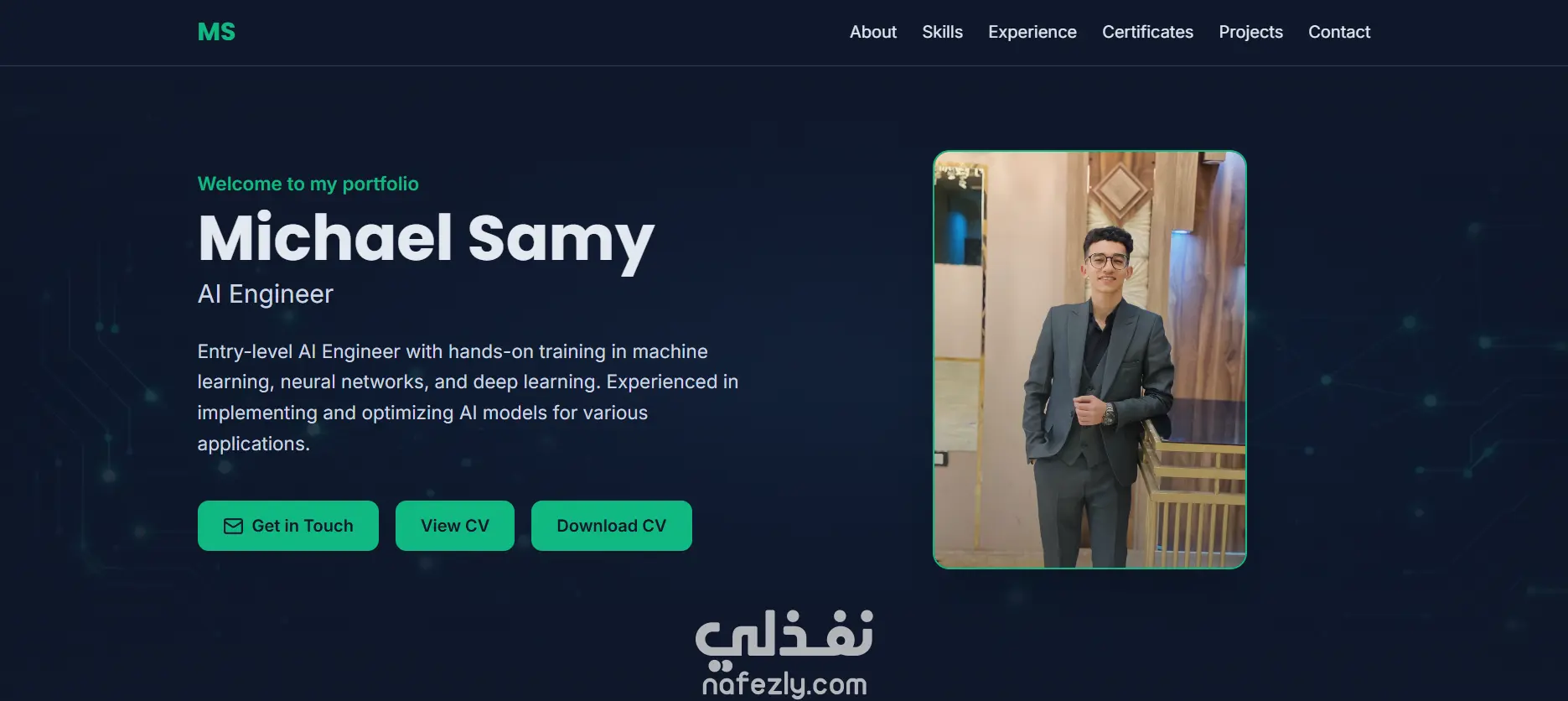 هذا البورتفوليو يعرض مجموعة من المشاريع التي قمت بتطويرها في مجالات البرمجة، تطوير المواقع، والذكاء الاصطناعي. مميزات البورتفوليو: تصميم واجهة حديثة وسهلة الاستخدام. عرض جميع المشاريع بشكل منظم مع شرح مبسط لكل مشروع. قابلية الربط بسهولة مع أي منصة أو موقع آخر. يعكس مهاراتي في البرمجة، التصميم، وحل المشكلات التقنية.