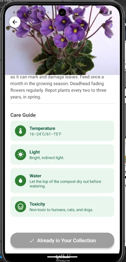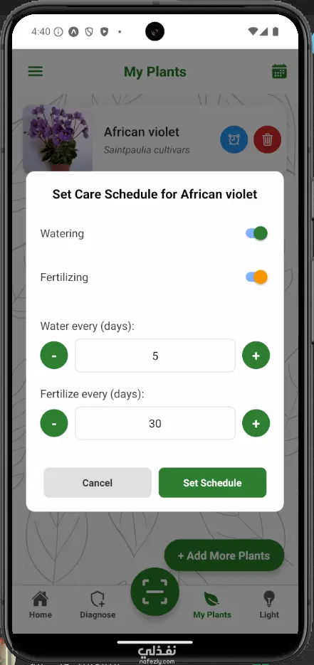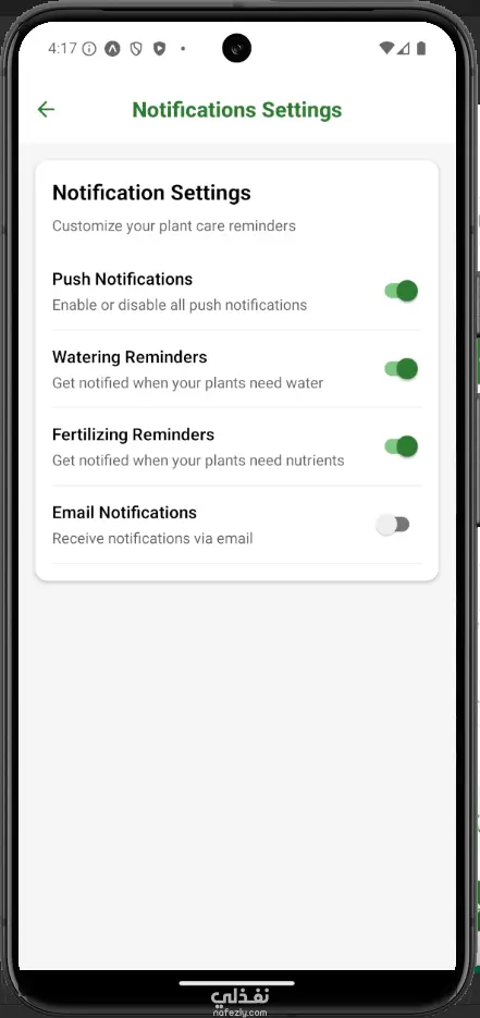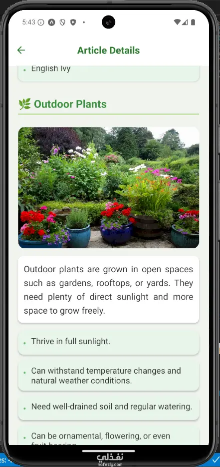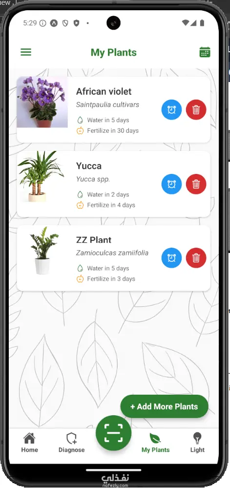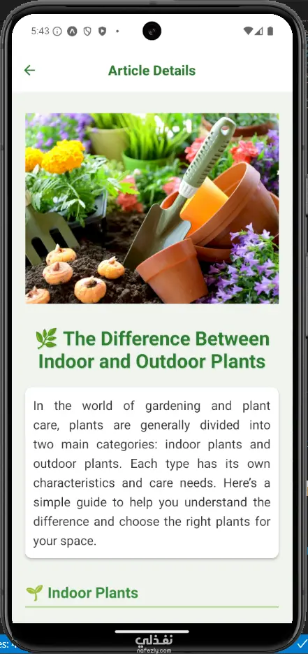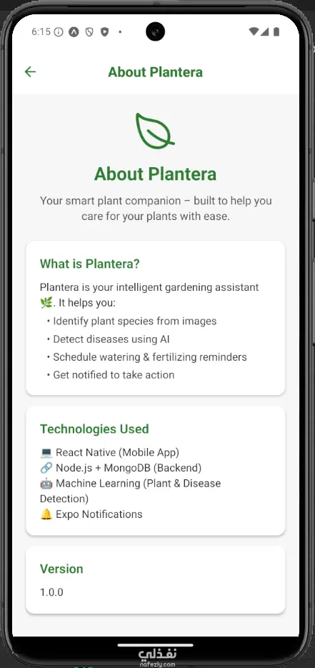 تطبيق موبايل متكامل لإدارة النباتات اليومية، يساعد المستخدمين على معرفة مواعيد الري والتسميد، تشخيص أمراض النباتات، والتعرف على أنواع النباتات باستخدام الذكاء الاصطناعي. التطبيق مبني بـ React Native، Node.js وMongoDB ويتميز بواجهة مستخدم جذابة وسهلة الاستخدام، مع إشعارات ذكية وتوصيات للعناية بالنباتات.
