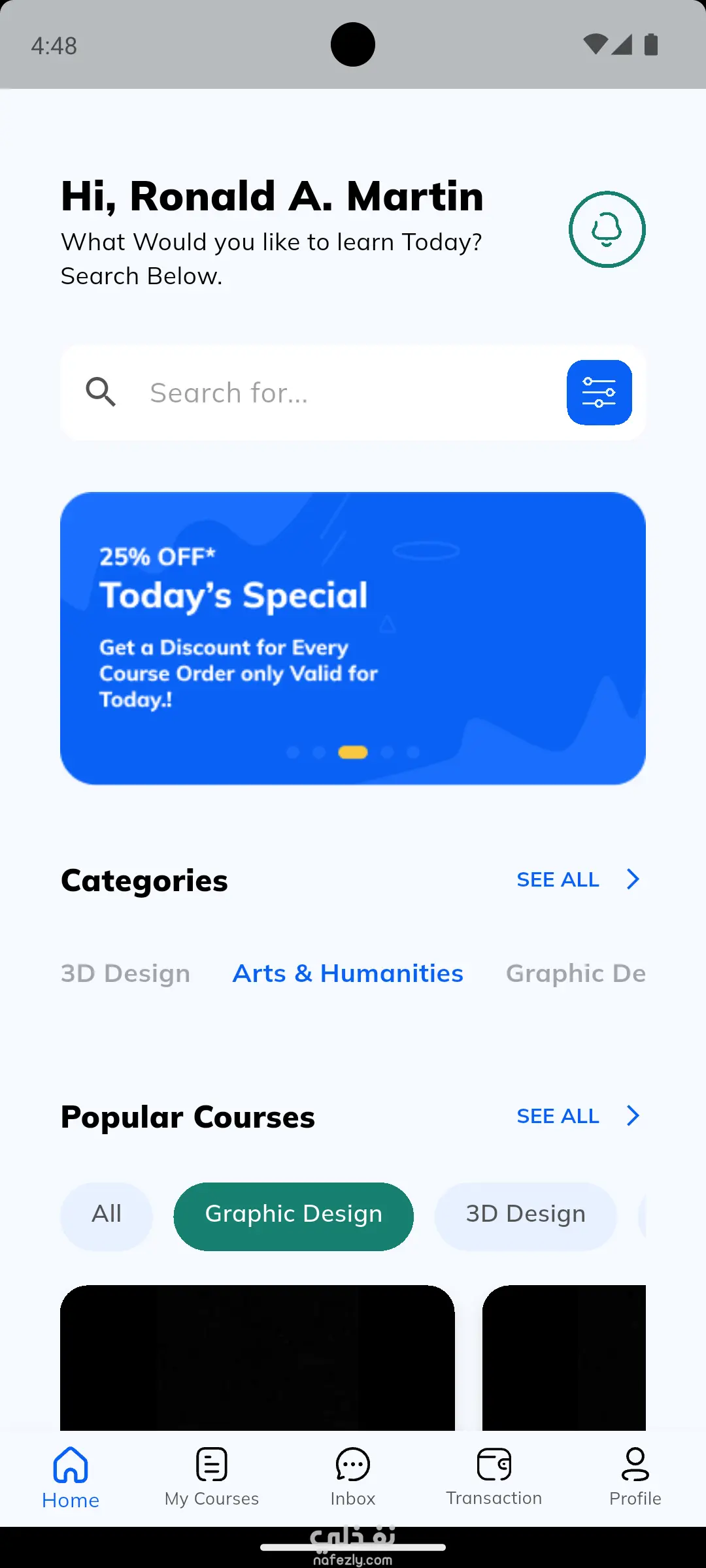 يوفر التطبيق تجربة تعليمية سهلة تتيح للمستخدم تصفح الكورسات، متابعة التقدم، والتفاعل مع المحتوى.