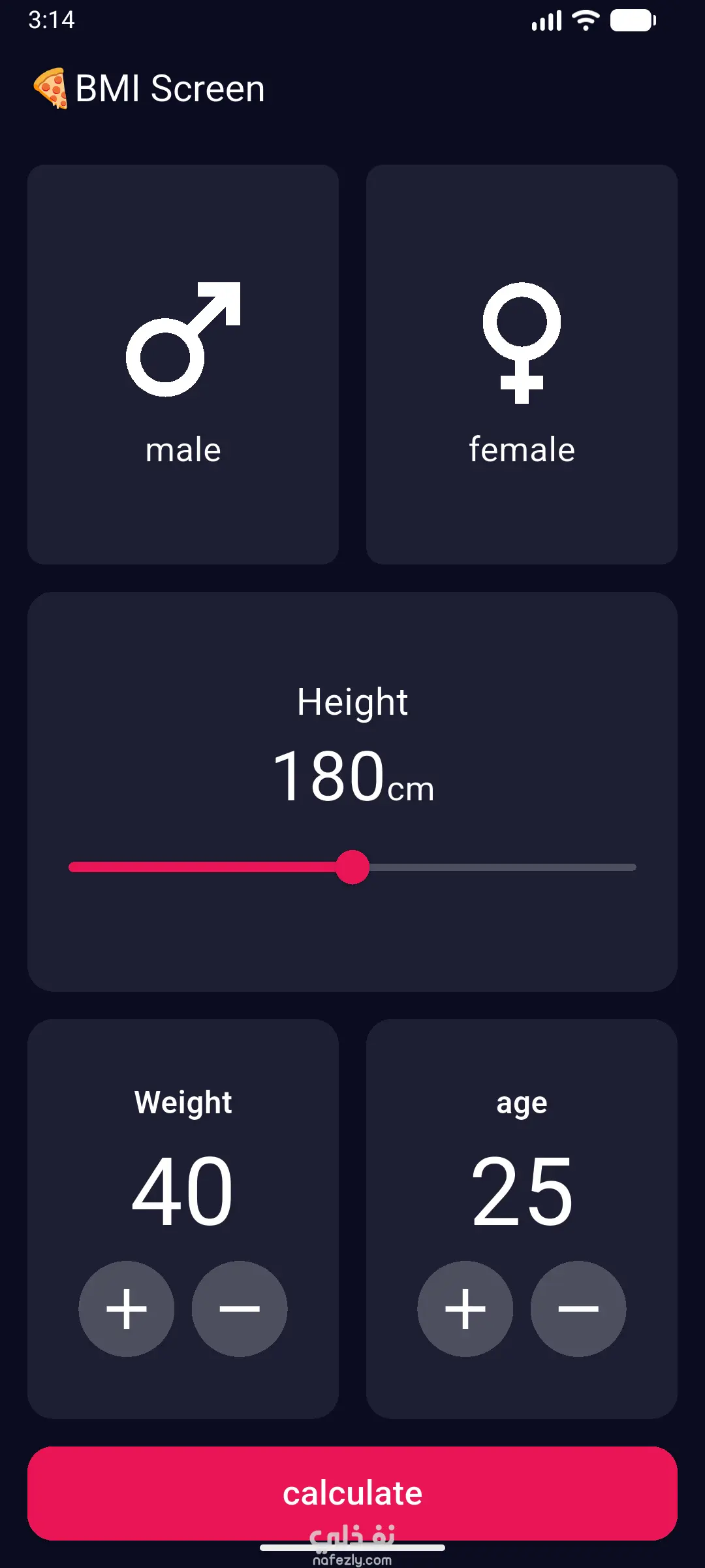 قمت بتطوير تطبيق BMI Calculator باستخدام Flutter لحساب مؤشر كتلة الجسم (BMI) وتحديد الحالة الصحية للمستخدم بطريقة سهلة وسريعة.