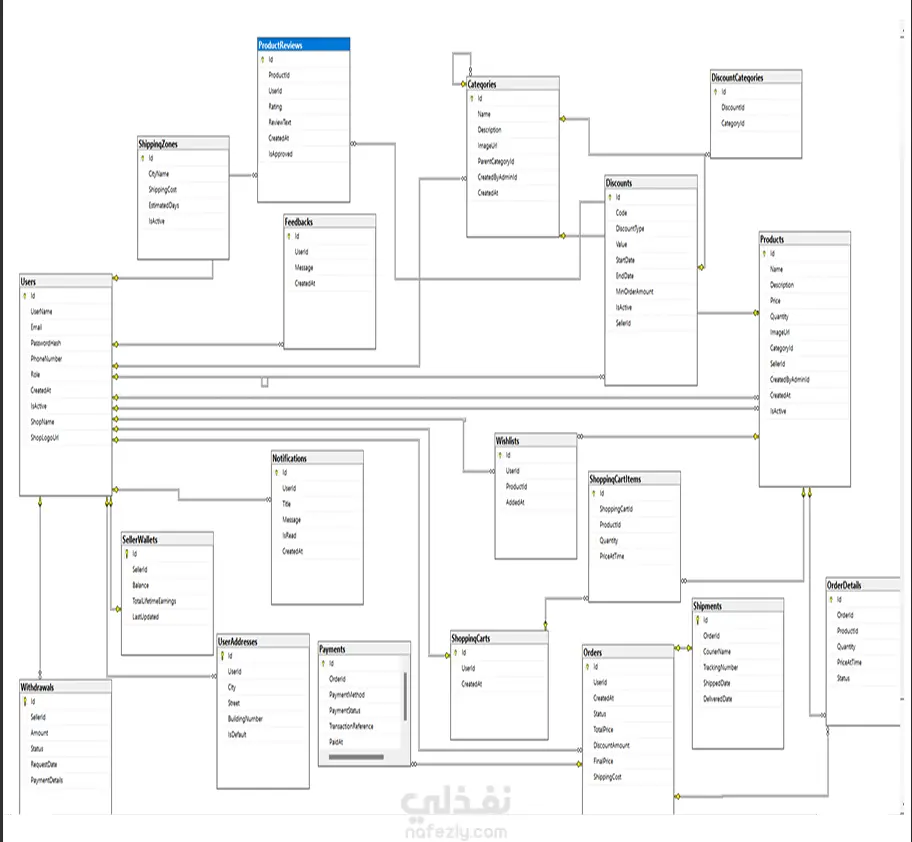 تحليل وتصميم الهيكلة: رسم المخطط الهيكلي لقاعدة البيانات (ERD - Entity Relationship Diagram) لتوضيح الجداول والعلاقات بينها بشكل منطقي.