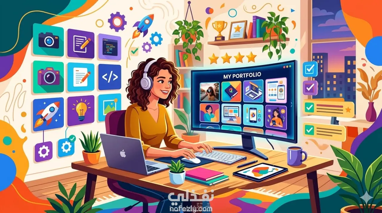 تصميم بورتفوليو منسق ومرتب يعكس مهاراتك ويعرض أعمالك بطريقة واضحة وسهلة الفهم، سواء كنت طالبًا، فريلانسر، أو تبحث عن فرصة عمل.
