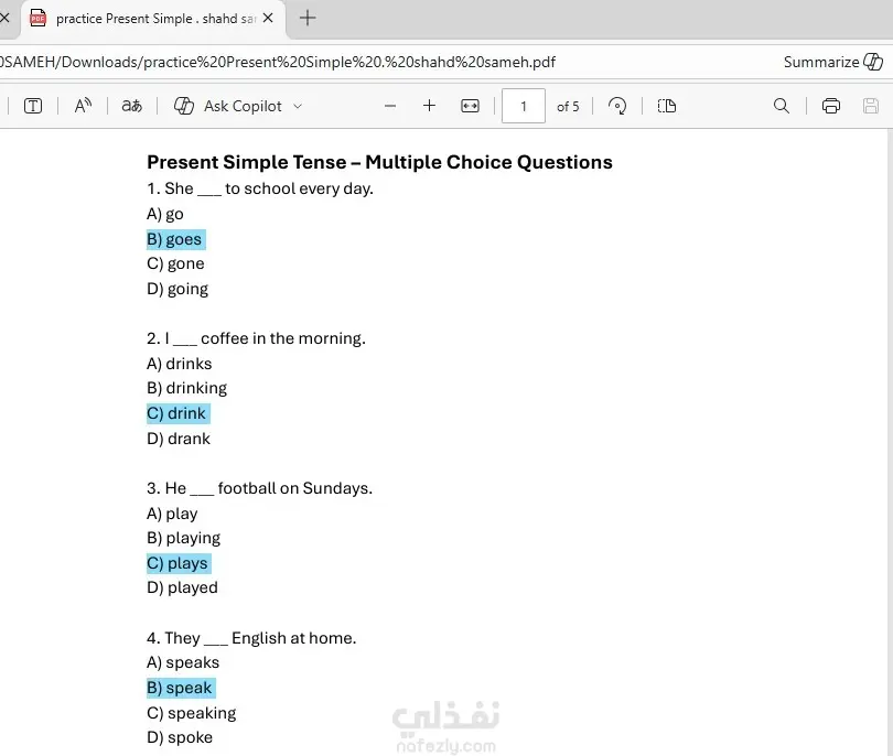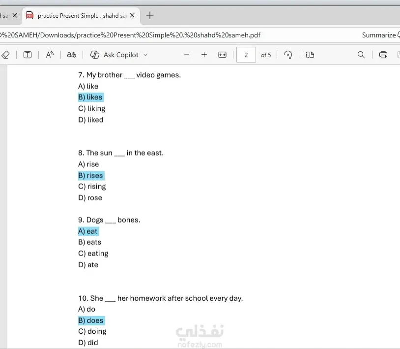قواعد اللغة الإنجليزية تدرس و حل وتدريب