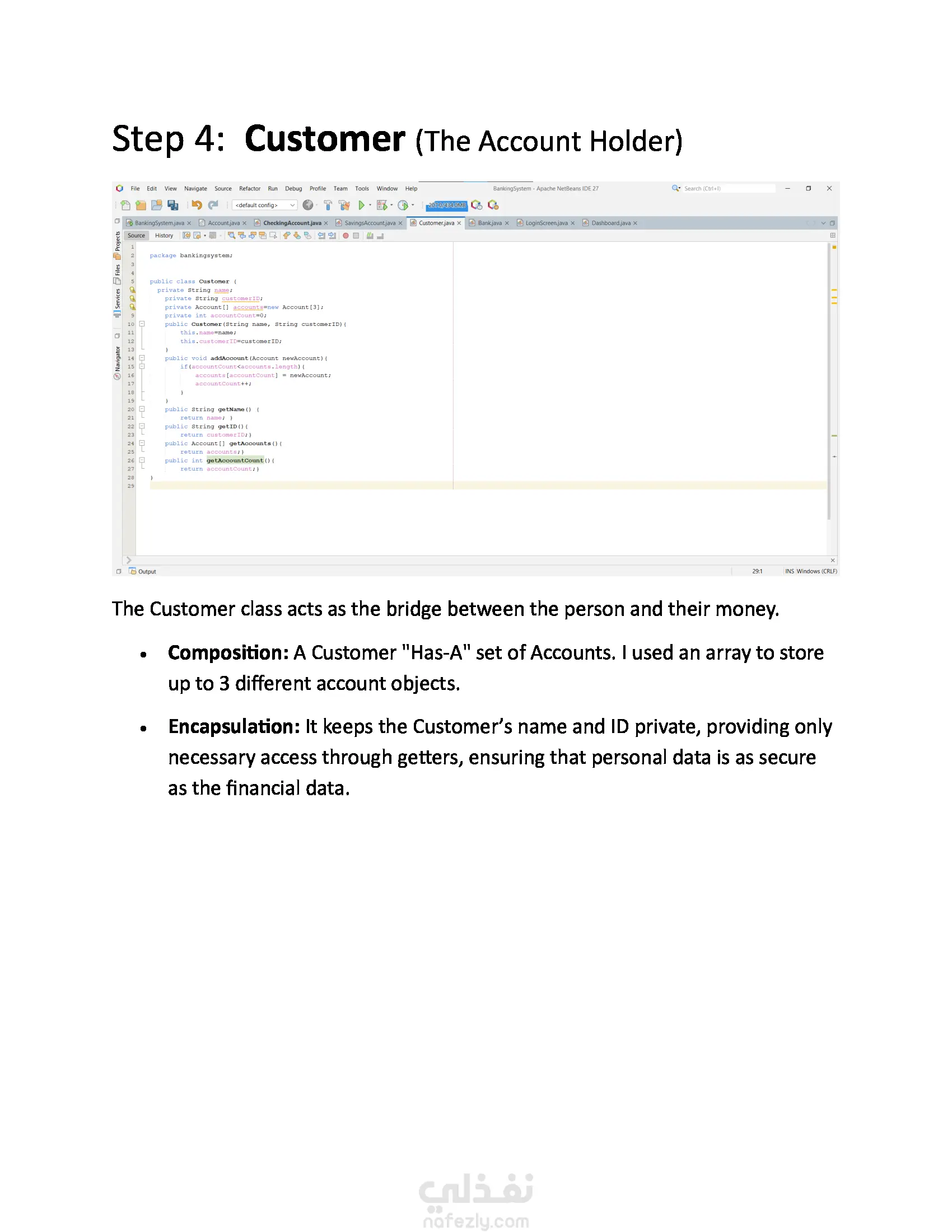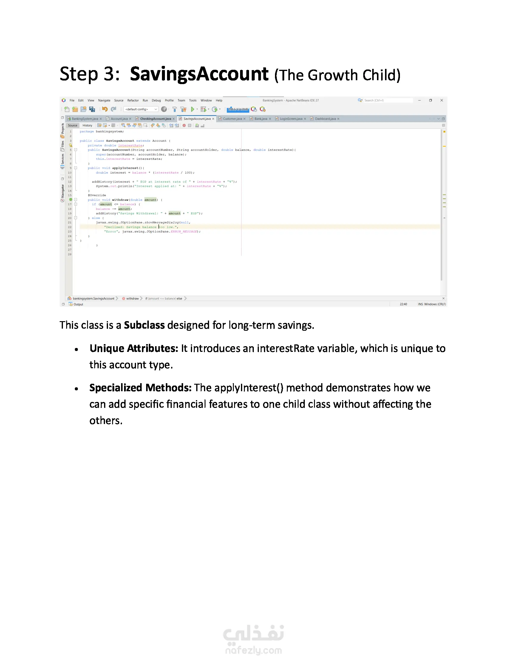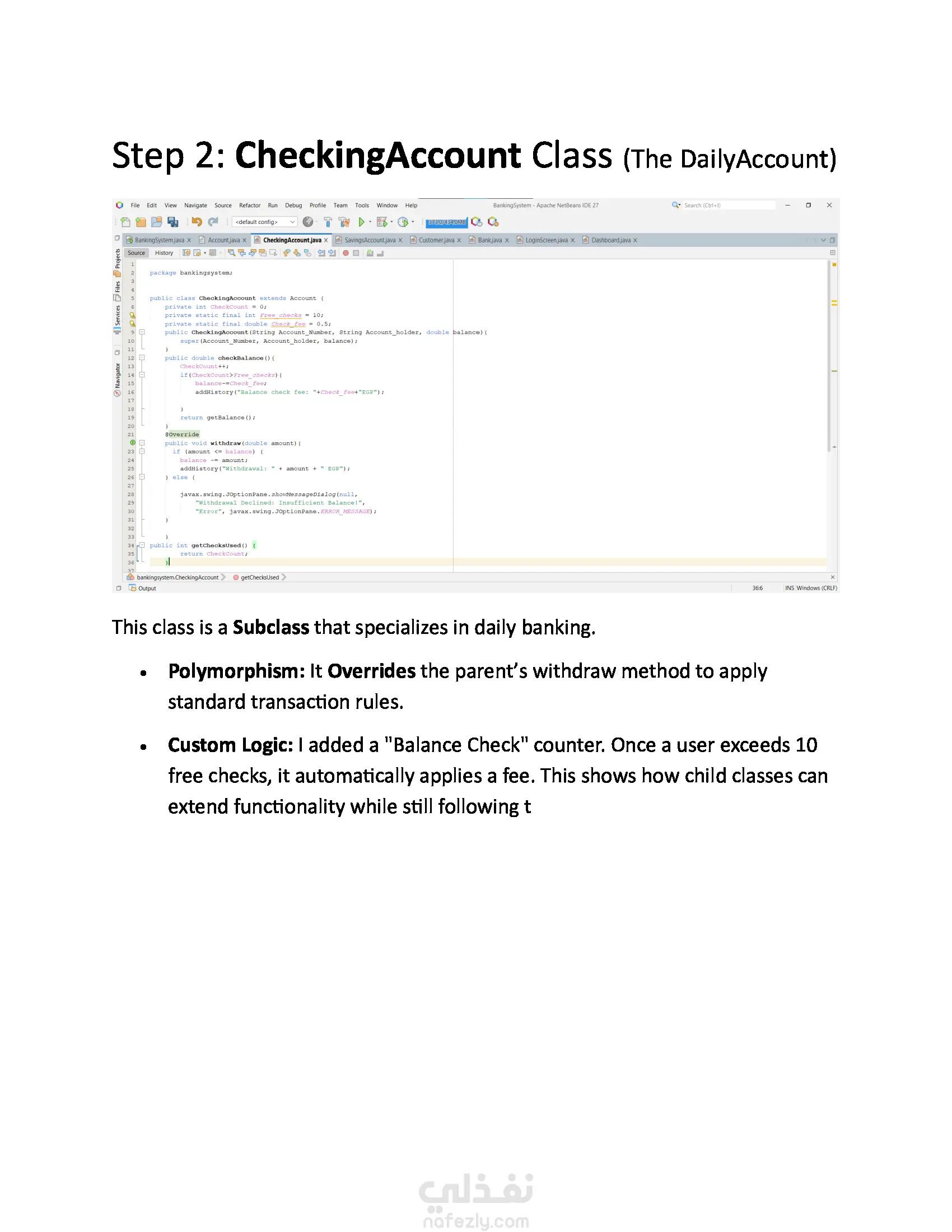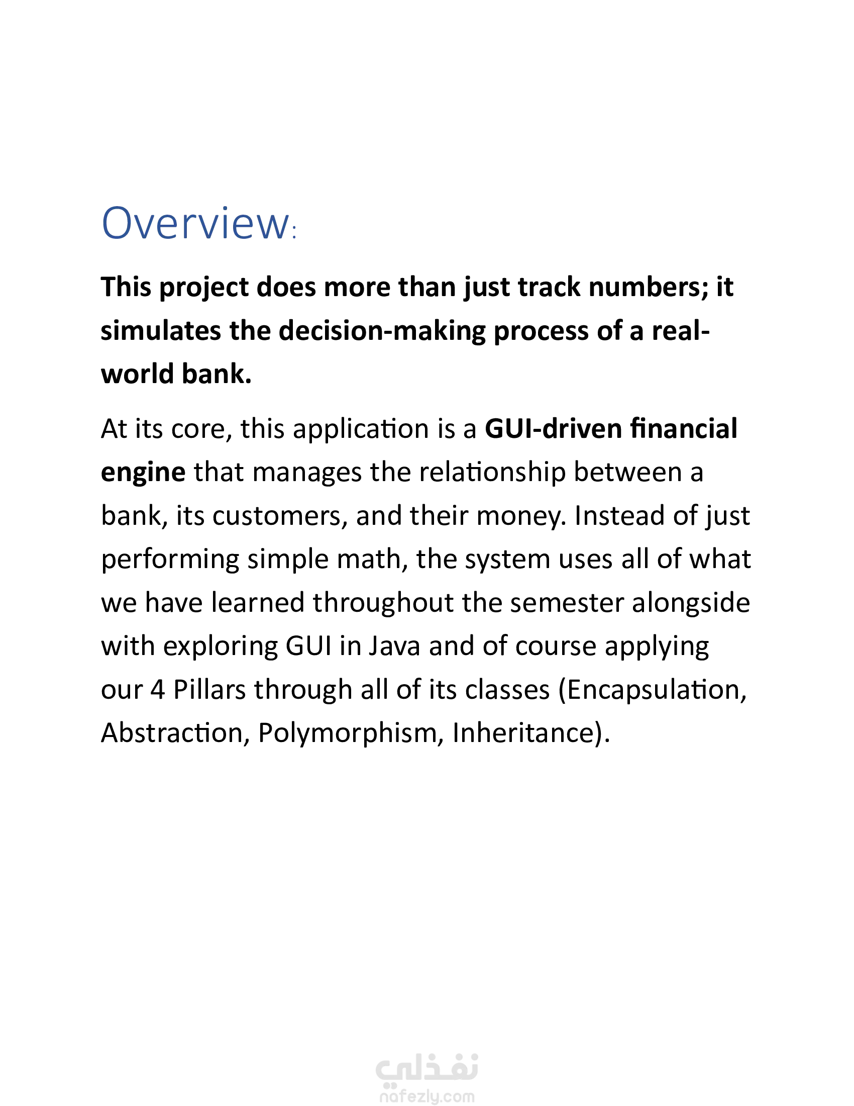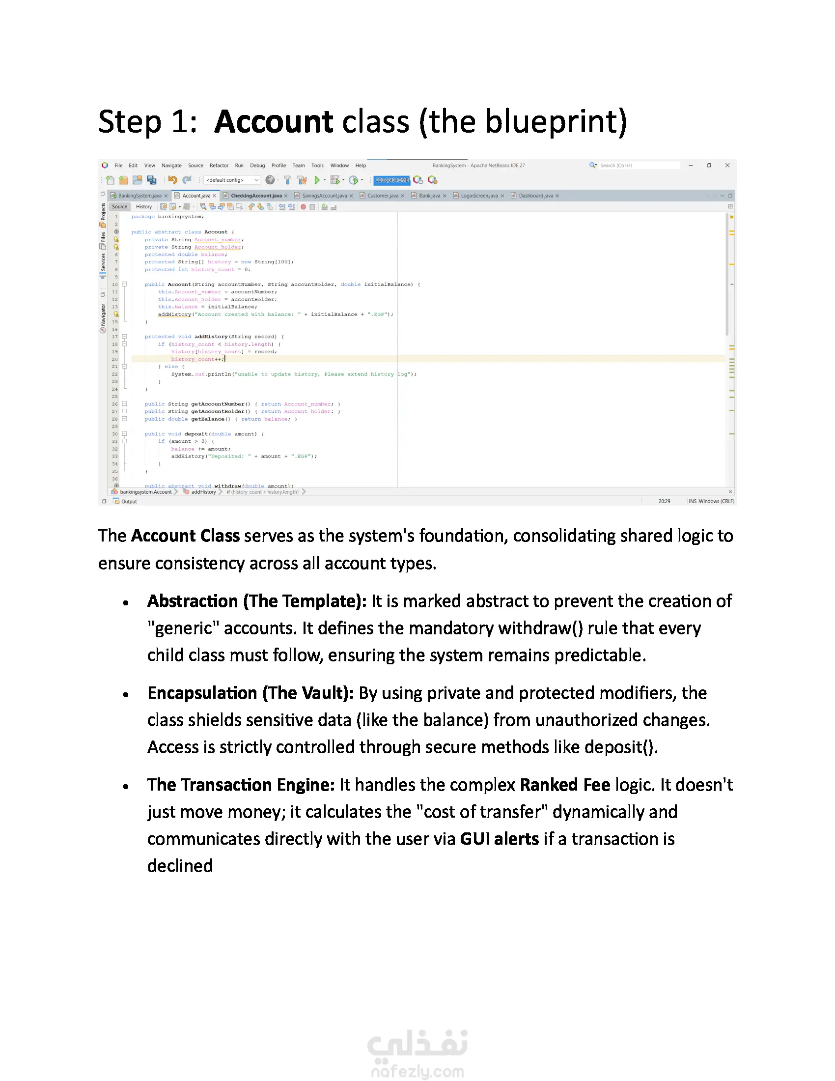 نظام بنكي أساسي مطوّر بلغة Java يدعم عمليات بسيطة مثل إنشاء الحسابات، الإيداع، السحب، والاستعلام عن الرصيد. يبرز المشروع مفاهيم البرمجة كائنية التوجه مثل الكلاسات، الدوال، والتغليف.