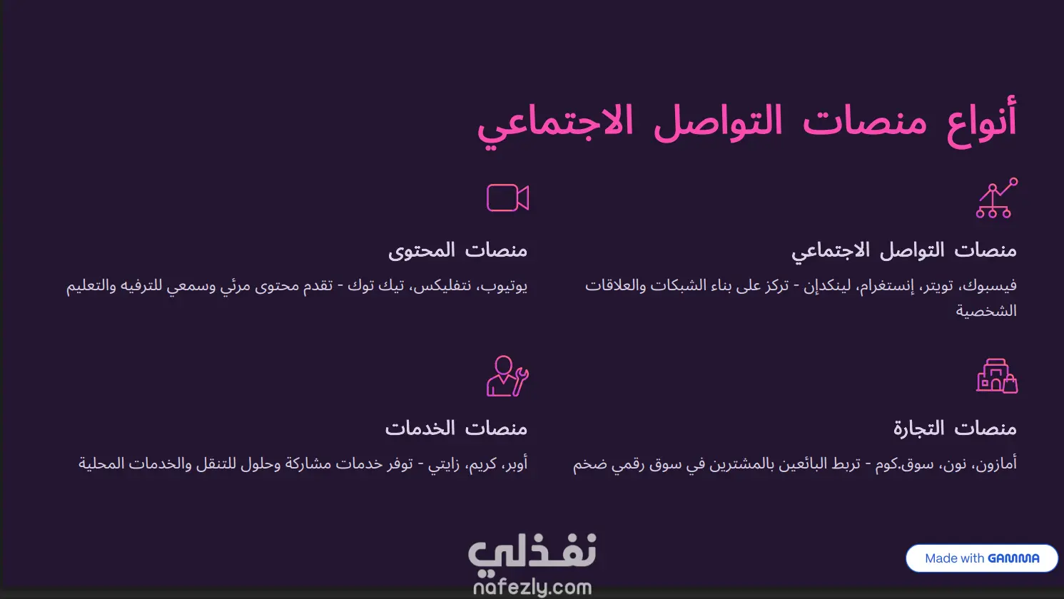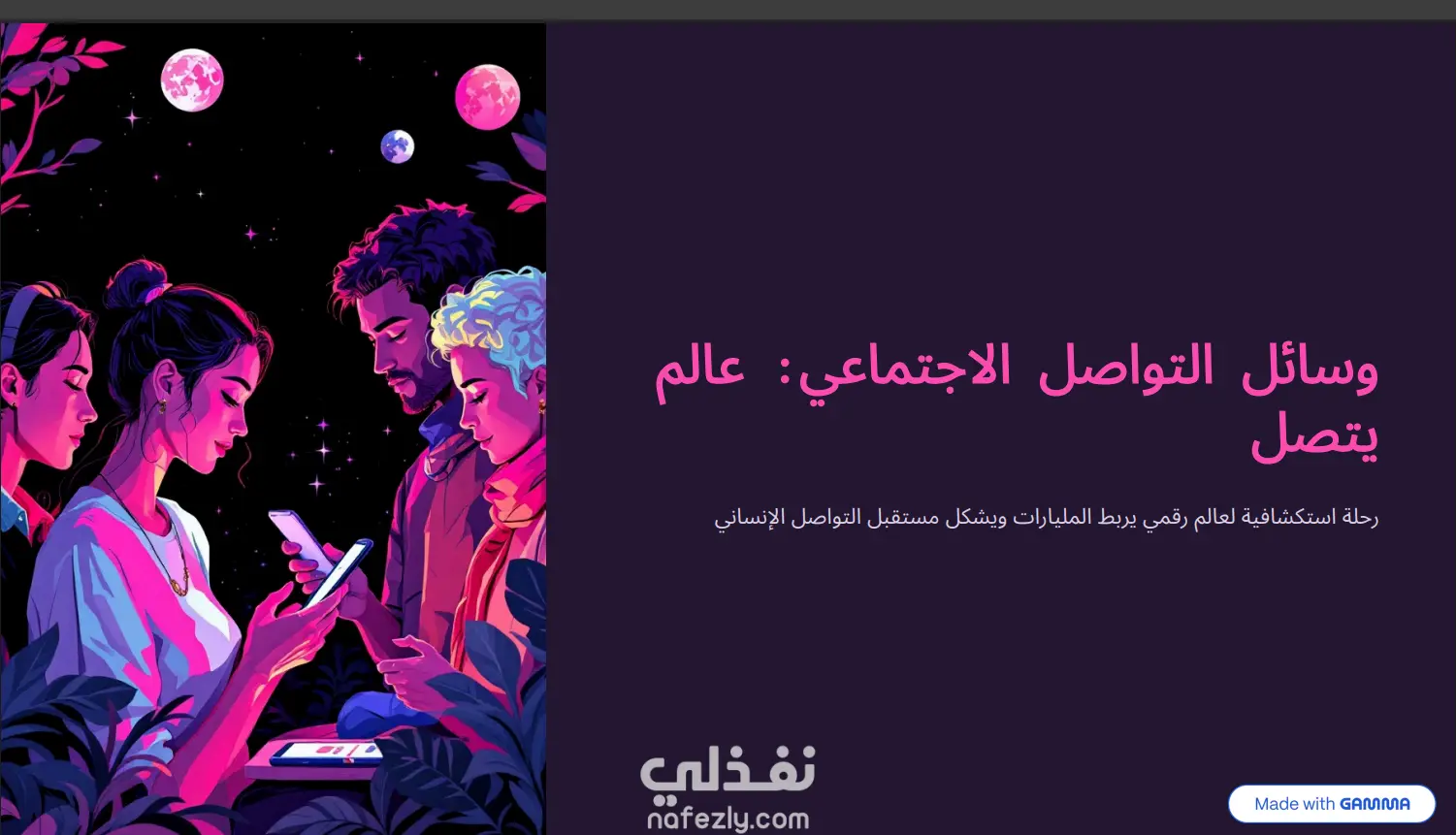 رض تقديمي تحليلي معمق يستعرض منظومة وسائل التواصل الاجتماعي، ليس فقط كأدوات للدردشة، بل كبنية تحتية متكاملة تعيد تشكيل التفاعل الإنساني والاقتصاد الرقمي. يتناول العمل الرحلة من التأسيس التقني إلى التأثيرات النفسية والاجتماعية المعقدة.