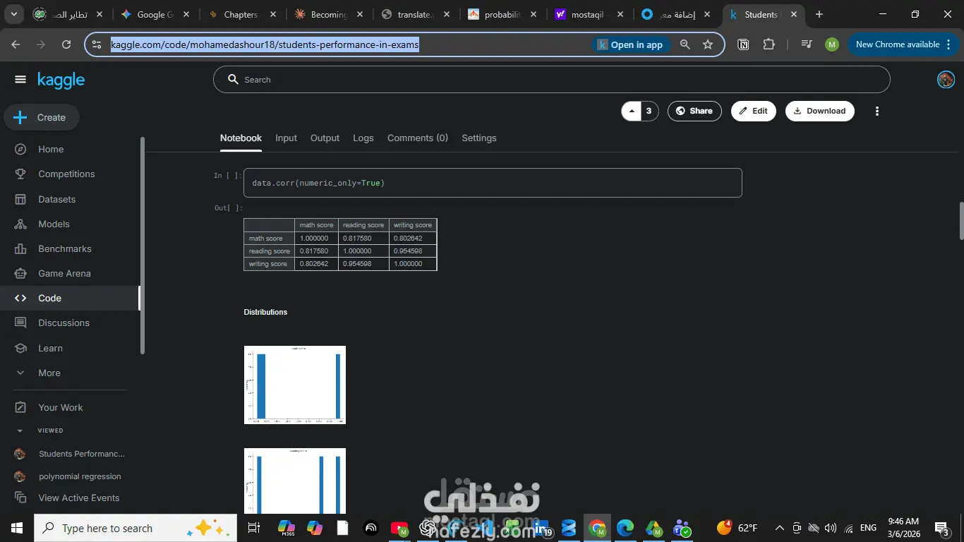 يهدف هذا المشروع إلى تحليل أداء الطلاب في الامتحانات واكتشاف العوامل التي قد تؤثر على نتائجهم الأكاديمية باستخدام تقنيات تحليل البيانات. تعتمد الدراسة على مجموعة بيانات تضم نتائج حوالي 1000 طالب في ثلاث مواد رئيسية هي الرياضيات والقراءة والكتابة، بالإضافة إلى مجموعة من الخصائص الديموغرافية والتعليمية مثل الجنس، مستوى تعليم الوالدين، نوع الوجبة الغذائية، وإكمال دورة التحضير للاختبار. بدأ المشروع بمرحلة تحليل البيانات الاستكشافي (Exploratory Data Analysis) لفهم بنية البيانات واكتشاف الأنماط والعلاقات بين المتغيرات المختلفة. بعد ذلك تم استخدام الرسوم البيانية والإحصاءات الوصفية لتحليل تأثير العوامل المختلفة مثل الجنس، مستوى تعليم الوالدين، ودورات التحضير على درجات الطلاب في المواد الثلاث. يساعد هذا التحليل في فهم العوامل التي قد تؤثر على الأداء الأكاديمي للطلاب، كما يوضح كيف يمكن استخدام أدوات تحليل البيانات لاستخراج رؤى مفيدة من البيانات التعليمية. يمثل هذا المشروع مثالًا عمليًا على كيفية استخدام تحليل البيانات لفهم الأنماط التعليمية واكتشاف العوامل التي قد تساعد في تحسين نتائج الطلاب