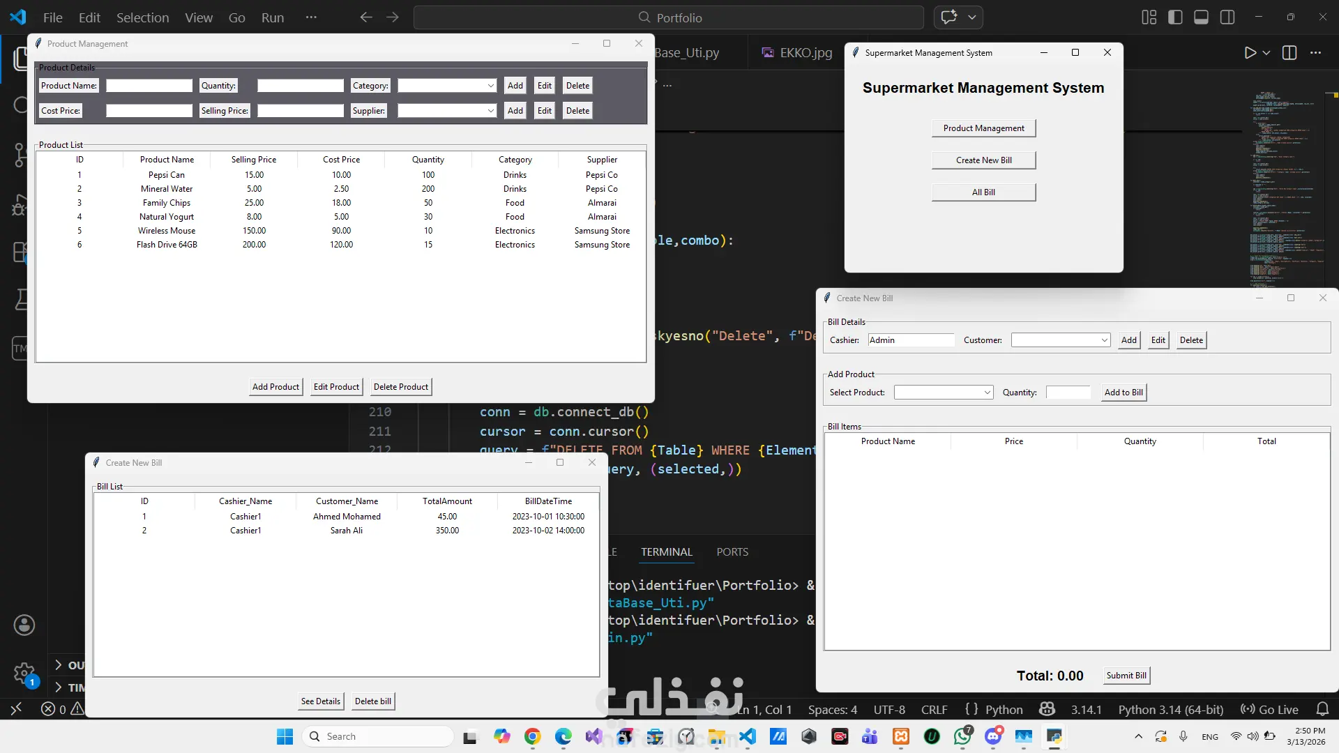 نظام إدارة السوبر ماركت هو تطبيق سطح مكتب (Desktop Application) تم تطويره باستخدام لغة Python (Tkinter) وقاعدة بيانات MySQL.