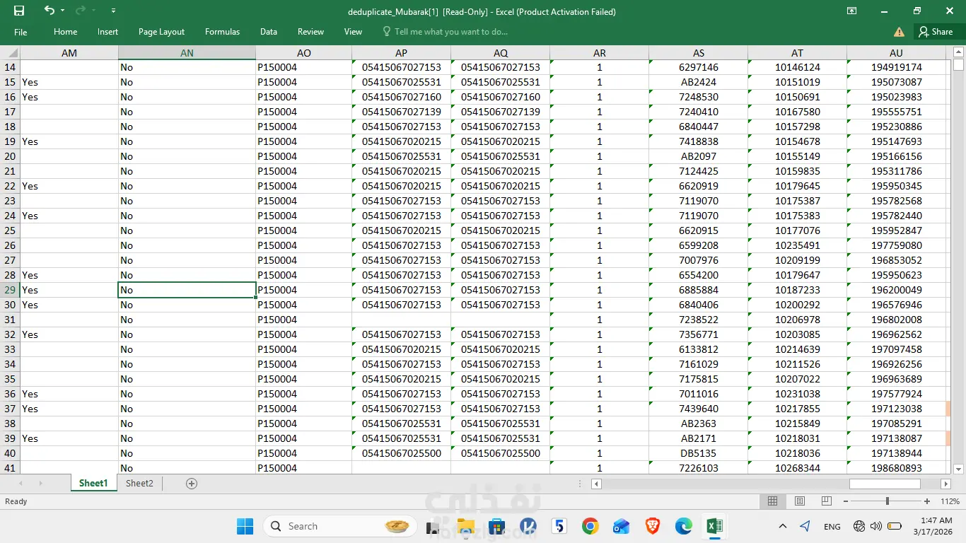 ملف Excel نهائي منظم وخالي من الأخطاء.