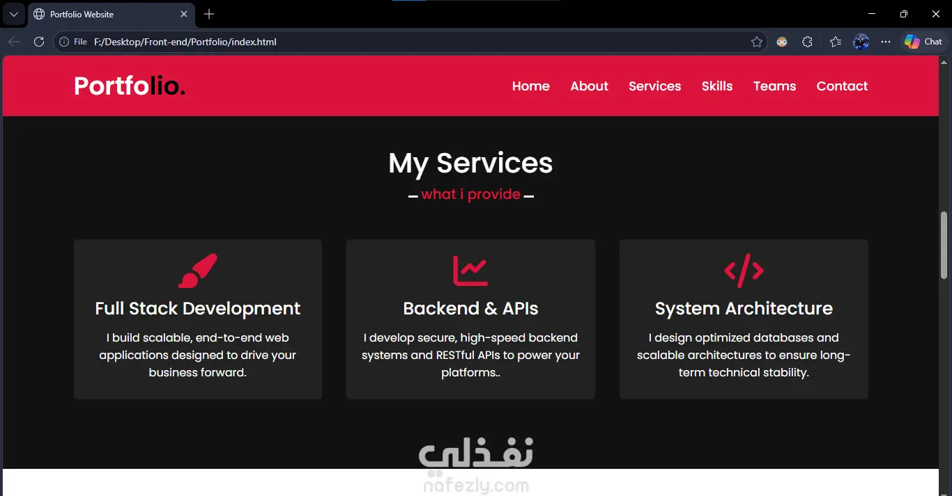 تصميم وتطوير موقع محفظة أعمال (Web Portfolio) احترافية لمطور Full Stack