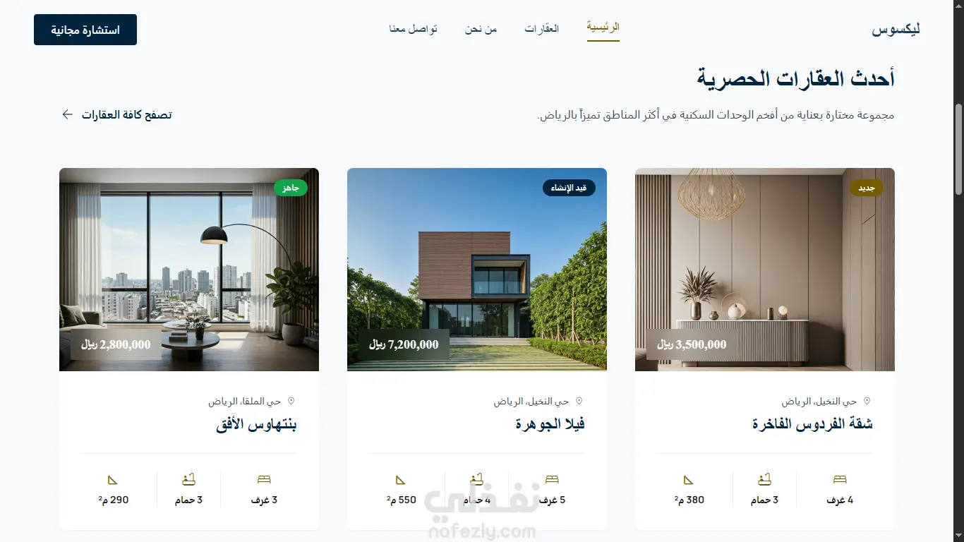 تصميم وتطوير Landing Page احترافية لشركة عقارات فاخرة Frontend