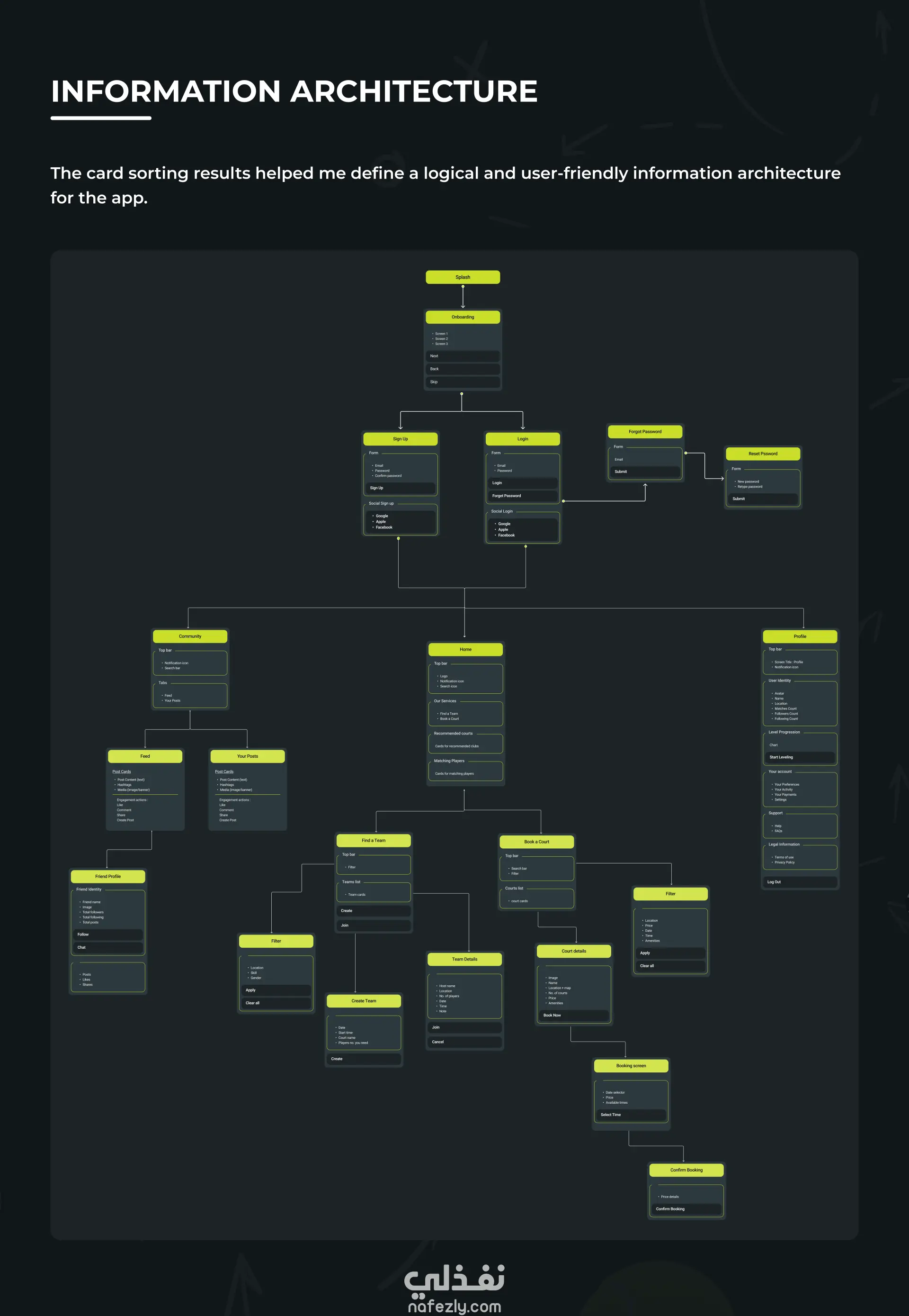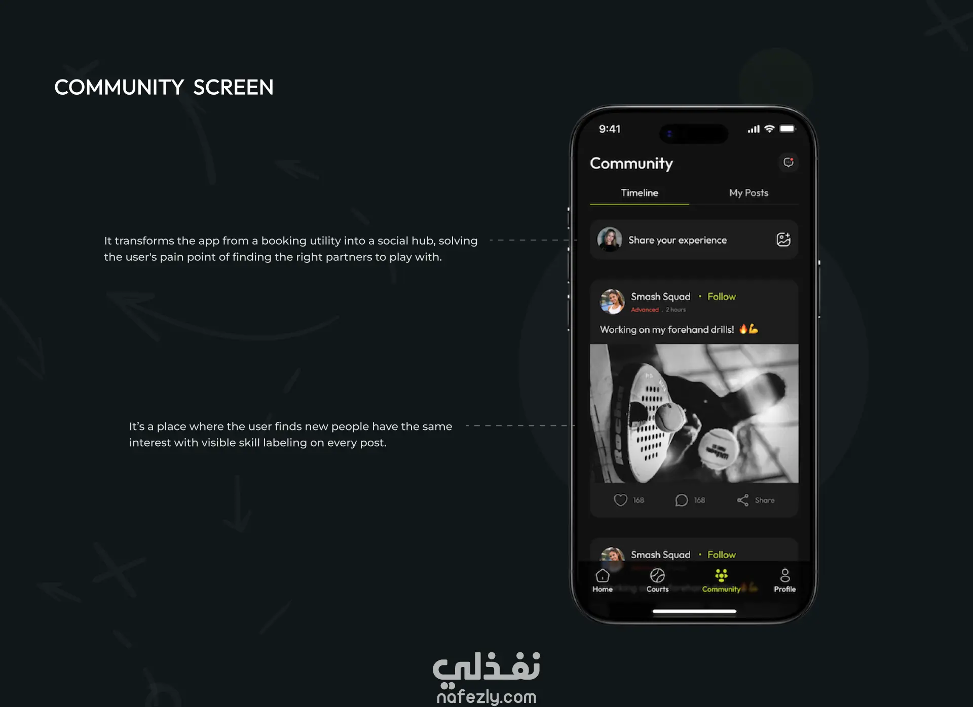 GO PADEL هو تصميم UI/ UX لتطبيق موبايل عبارة عن منصة رقمية متكاملة مصممة خصيصاً لمجتمع رياضة "البادل" المتنامي. يهدف التطبيق إلى تحسين تجربة ممارسة هذه الرياضة من خلال دمج نظام حجز ملاعب متطور مع شبكة اجتماعية تفاعلية. لا يقتصر التطبيق على كونه أداة للحجز، بل هو "نظام بيئي" متكامل يربط اللاعبين بالأندية، ويحل مشكلة البحث عن شركاء للعب بناءً على مستويات المهارة، مما يجعل تجربة المستخدم أكثر سلاسة واحترافية. يهدف المشروع إلى تحقيق أهداف استراتيجية لخدمة المستخدم النهائي (لاعب رياضة البادل) وصاحب النادي: - تسهيل عملية الحجز و تقليل الوقت والجهد المبذول في البحث عن ملاعب متاحة. - بناء مجتمع رياضي (Community) تتيح للاعبين مشاركة تجاربهم، الفيديوهات، ونصائح التدريب مع اشخاص تشاركهم نفس الاهتمامات. - تحقيق التكافؤ في مستويات اتقان هذه الرياضة من خلال تقديم ميزة "البحث عن فريق" مع توضيح مستوى المهارة (مبتدئ، متوسط، محترف)، مما يضمن مباريات متوازنة وممتعة لجميع الأطراف. الأدوات المستخدمة في تنفيذ المشروع: - تم استخدام (FigJam) في مرحلة البحث و تجميع البيانات و التحليل و التفكير و التحليل. - تم استخدام (Miro) في إنشاء الـ wireframesو تحديد هيكل الصفحات. - تم استخدام (Figma) في تصميم واجهات التطبيق بدءاً من إنشاء الـ wireframes وصولا إلى الواجهات النهائية للتطبيق بالكامل. كما تم استخدام الـ components و الـ variables لتنظيم التصميم وتسهيل التعديل عليه.