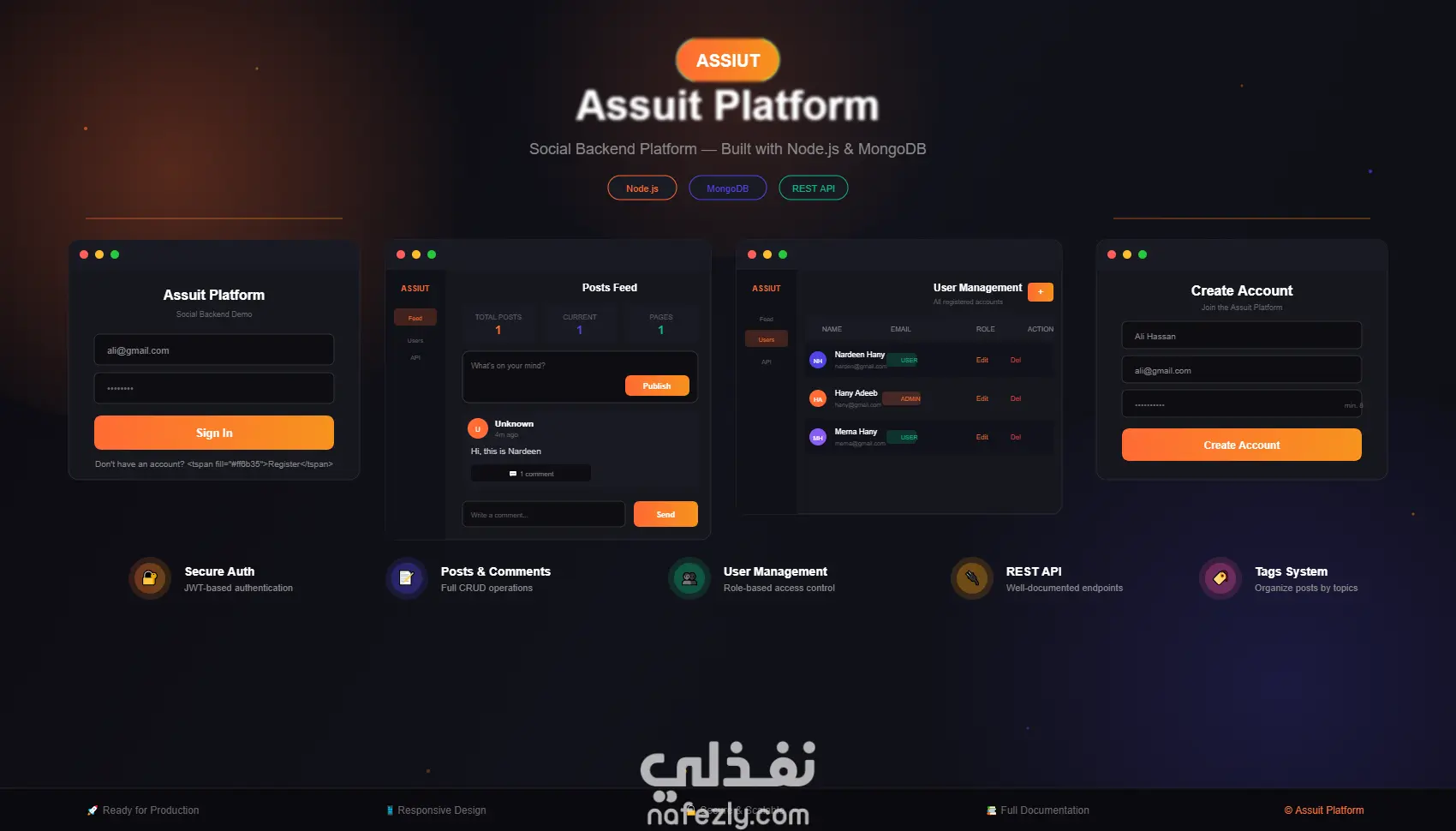 منصة Assuit Platform | تطبيق تواصل اجتماعي متكامل باستخدام Node.js & MongoDB