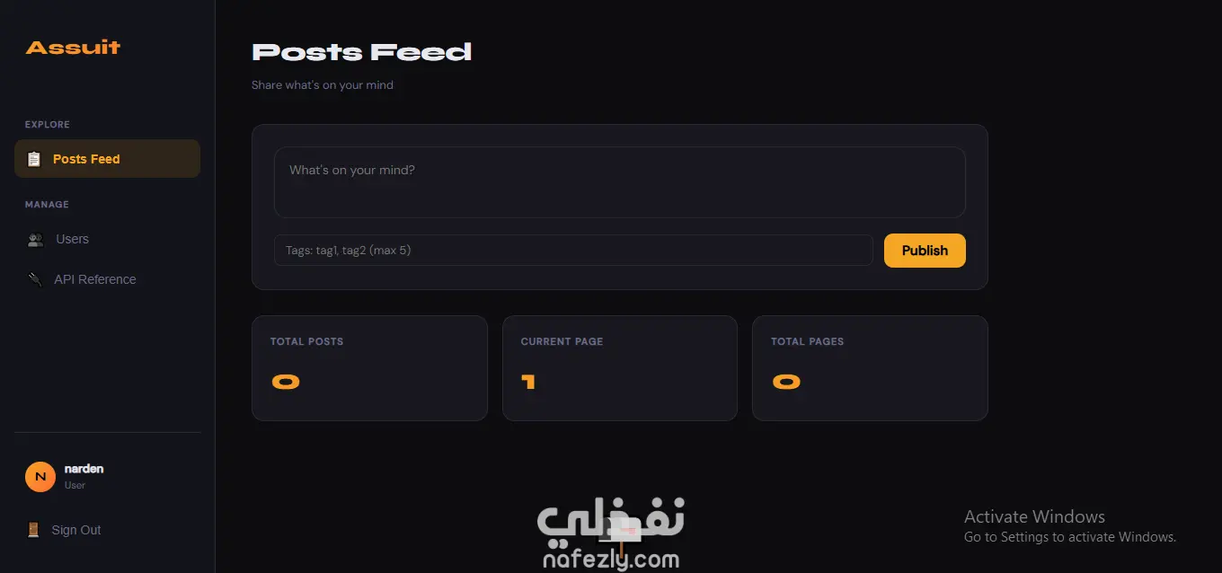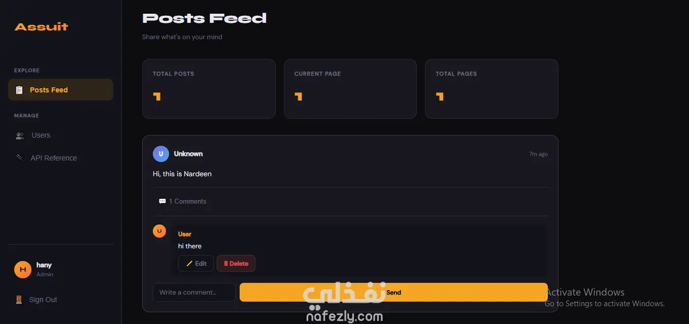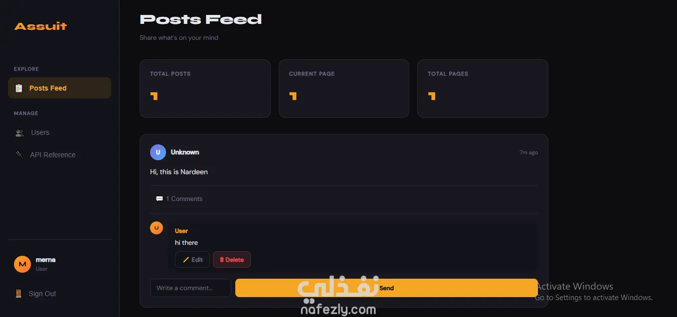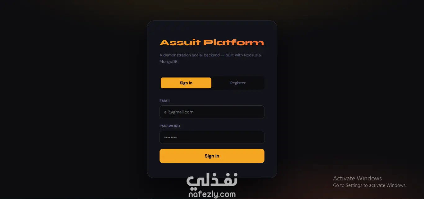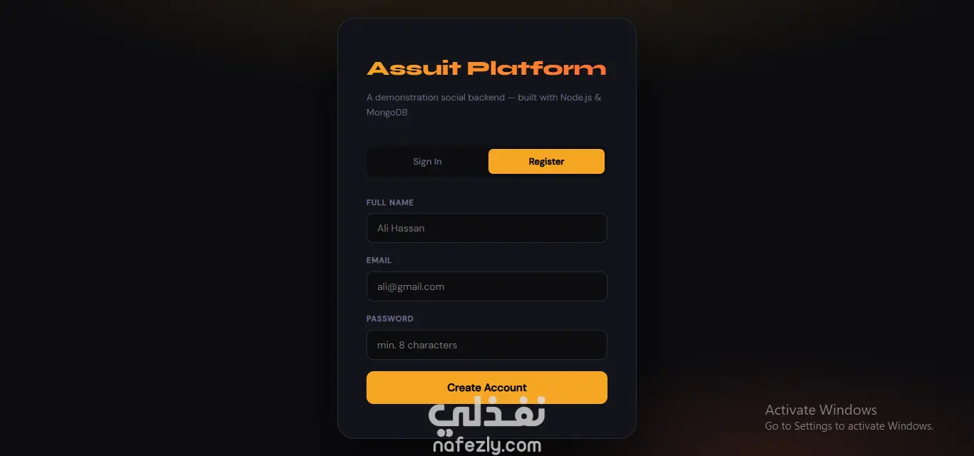 مشروع Assuit Platform هو تطبيق ويب متطور (Full-Stack) يمثل نموذجاً لنظام تواصل اجتماعي يركز على الأداء العالي وتجربة المستخدم السلسة. تم بناء المشروع باستخدام بيئة Node.js مع توظيف أحدث معايير البرمجة (ES6+). المميزات الرئيسية: نظام توثيق وهوية (Authentication): تسجيل الدخول وإنشاء حسابات جديدة مع تشفير كلمة المرور. لوحة تحكم للمسؤول (Admin Dashboard): إمكانية إدارة المستخدمين بشكل كامل (تعديل، حذف، عرض). نظام منشورات تفاعلي (Posts Feed): إضافة منشورات، التعليق عليها، مع دعم ميزة "التصفح المبوب" (Pagination). التحقق من البيانات (Server-side Validation): استخدام Express-Validator لضمان دقة البيانات المدخلة وحماية النظام من الثغرات. واجهة مستخدم عصرية: تصميم Dark Mode مريح للعين ومتجاوب (Responsive) باستخدام HTML و CSS و JavaScript. التقنيات المستخدمة: Backend: Node.js, Express.js. Database: MongoDB مع مكتبة Mongoose لنمذجة البيانات. Frontend: HTML5, CSS3, JavaScript (ES6). Validation: Express-Validator.