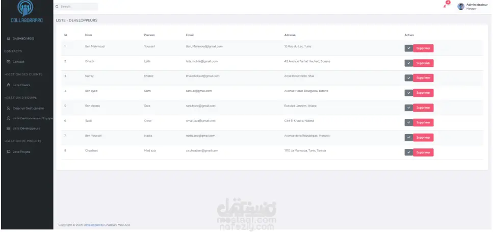 يُتابع تقدم المشروع، ويستقبل الملاحظات أو الأكواد من الفريق.