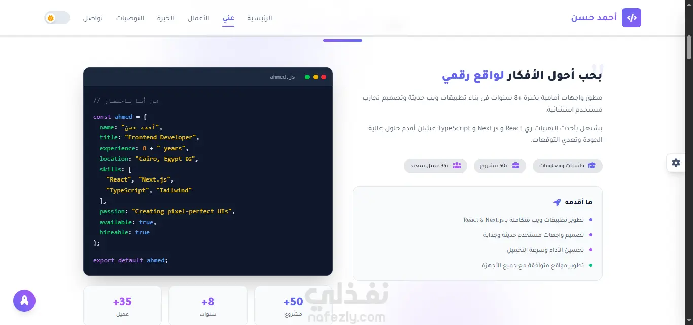تصميم وتنفيذ مشروع بورتوفليو شخصي لعرض المعلومات الأساسية مثل البيانات الشخصية، المهارات، والخبرات بشكل منظم وواضح. ركّز المشروع على بساطة التصميم وسهولة التصفح مع الاهتمام بتجربة المستخدم وتنسيق المحتوى بصورة احترافية.