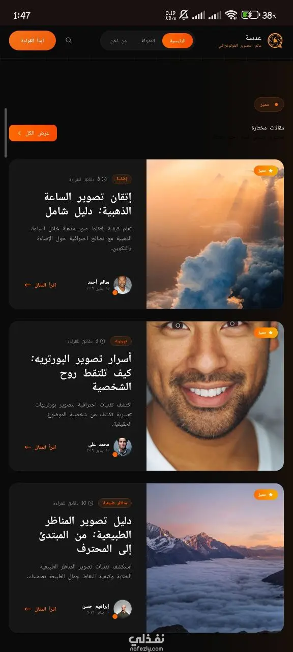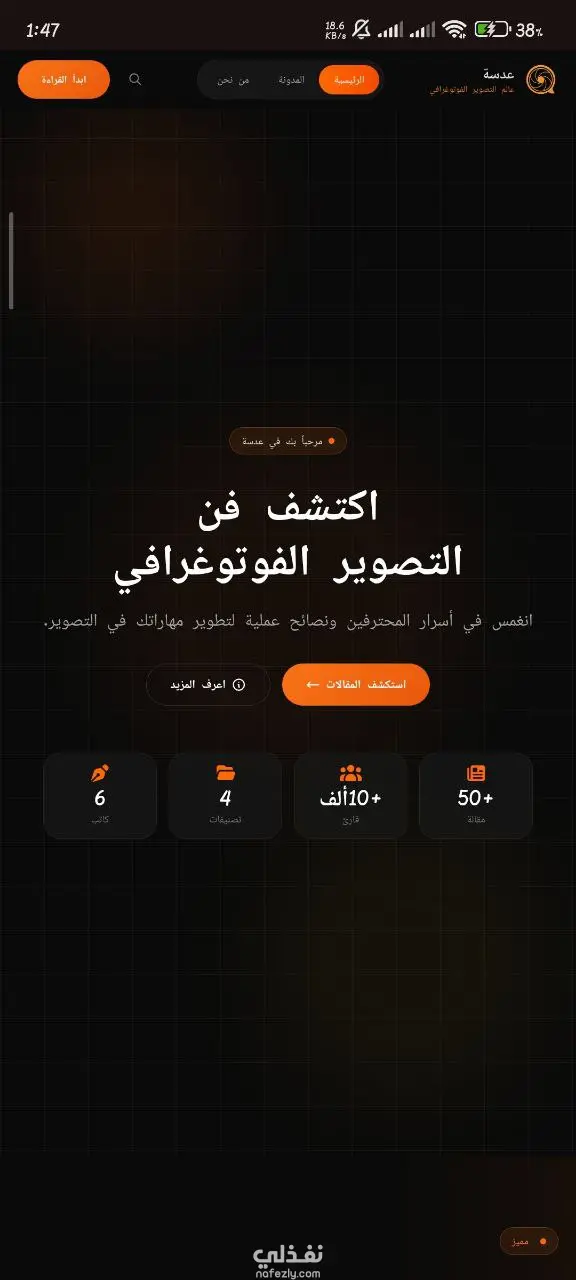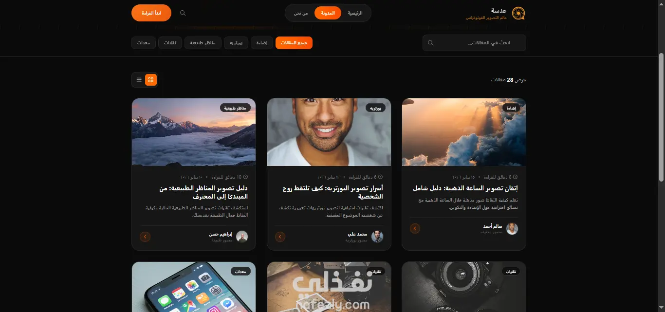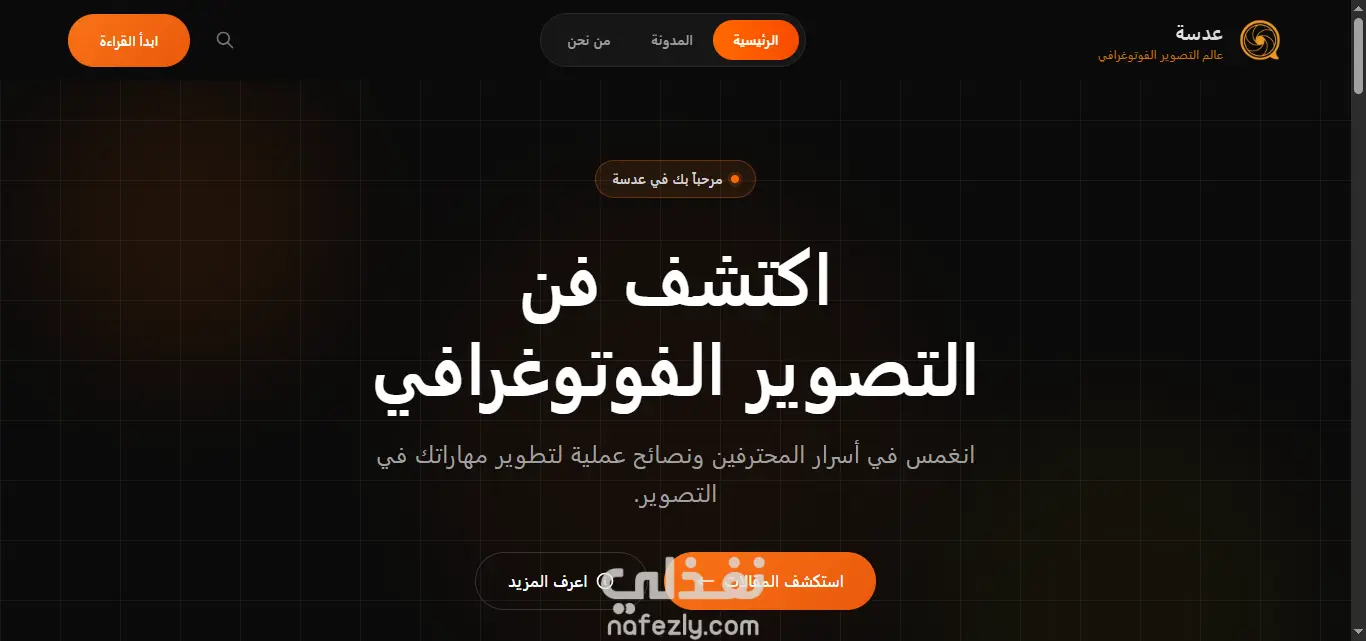 قمت بتصميم وتطوير صفحة هبوط (Landing Page) حديثة لموقع يهتم بمجال التصوير الفوتوغرافي، باستخدام مكتبة React. يركز التصميم على تقديم تجربة مستخدم جذابة من خلال واجهة داكنة عصرية، مع إبراز المحتوى بطريقة منظمة وسهلة التصفح. يتضمن المشروع أقسام متعددة مثل: Hero Section جذاب مع Call To Action عرض المقالات بشكل كروت (Cards Design) كما تم الاهتمام بتفاصيل الواجهة مثل الألوان، الخطوط، والتفاعل مع المستخدم لإعطاء إحساس احترافي وحديث.
