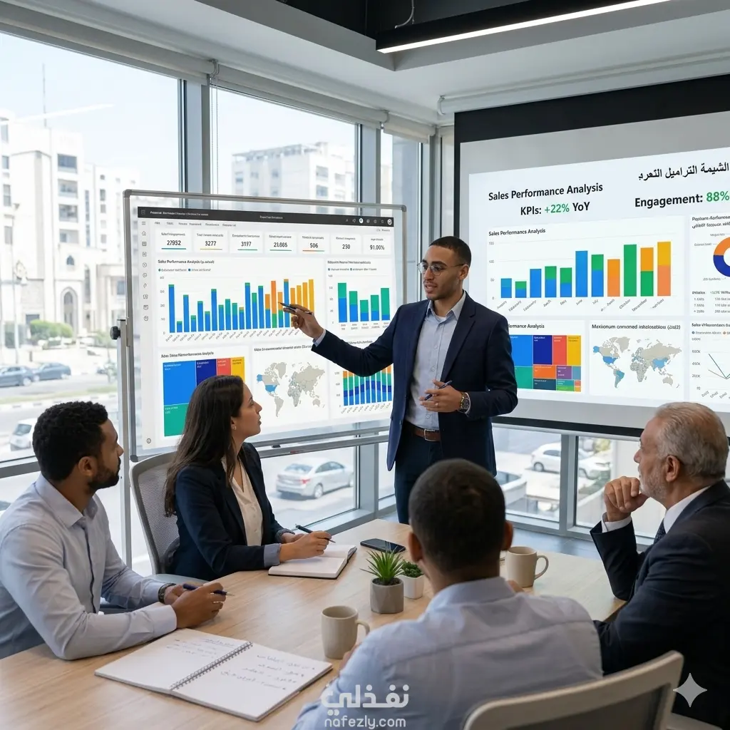 تصميم لوحات تحكم تفاعلية (Interactive Dashboard Design): بناء لوحات معلومات ديناميكية وجذابة بصريًا باستخدام Power BI أو Excel. هذه اللوحات تتيح لك استكشاف البيانات بسهولة، ومراقبة مؤشرات الأداء الرئيسية (KPIs) في الوقت الفعلي، والتنقل بين التفاصيل الكلية والجزئية بمرونة.