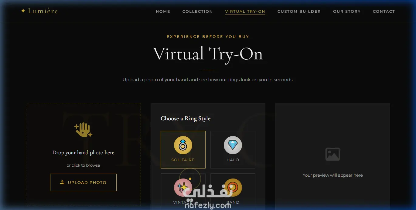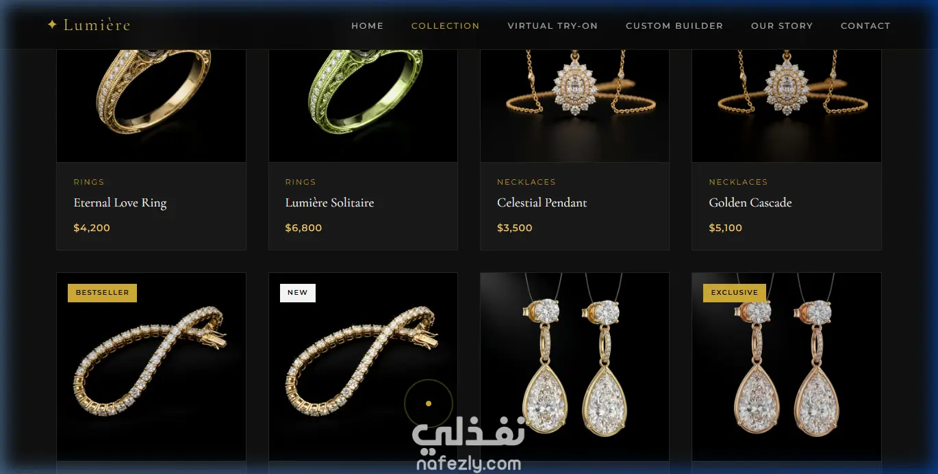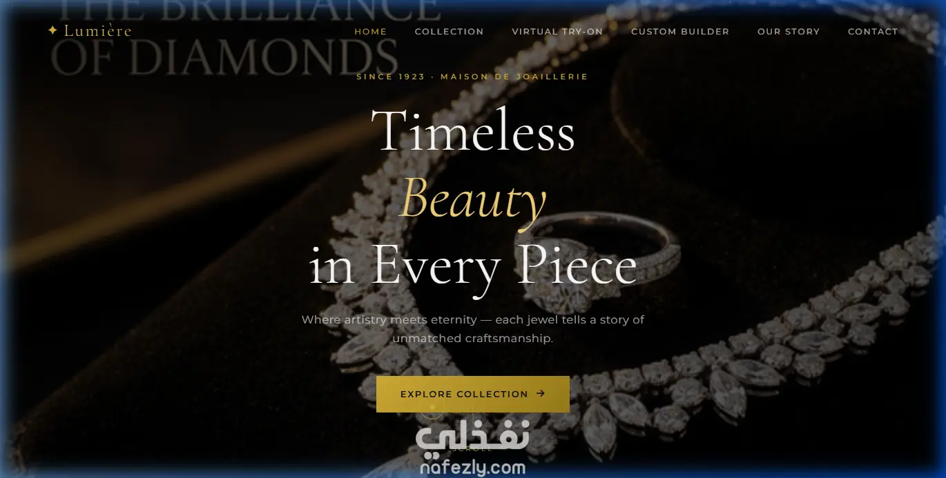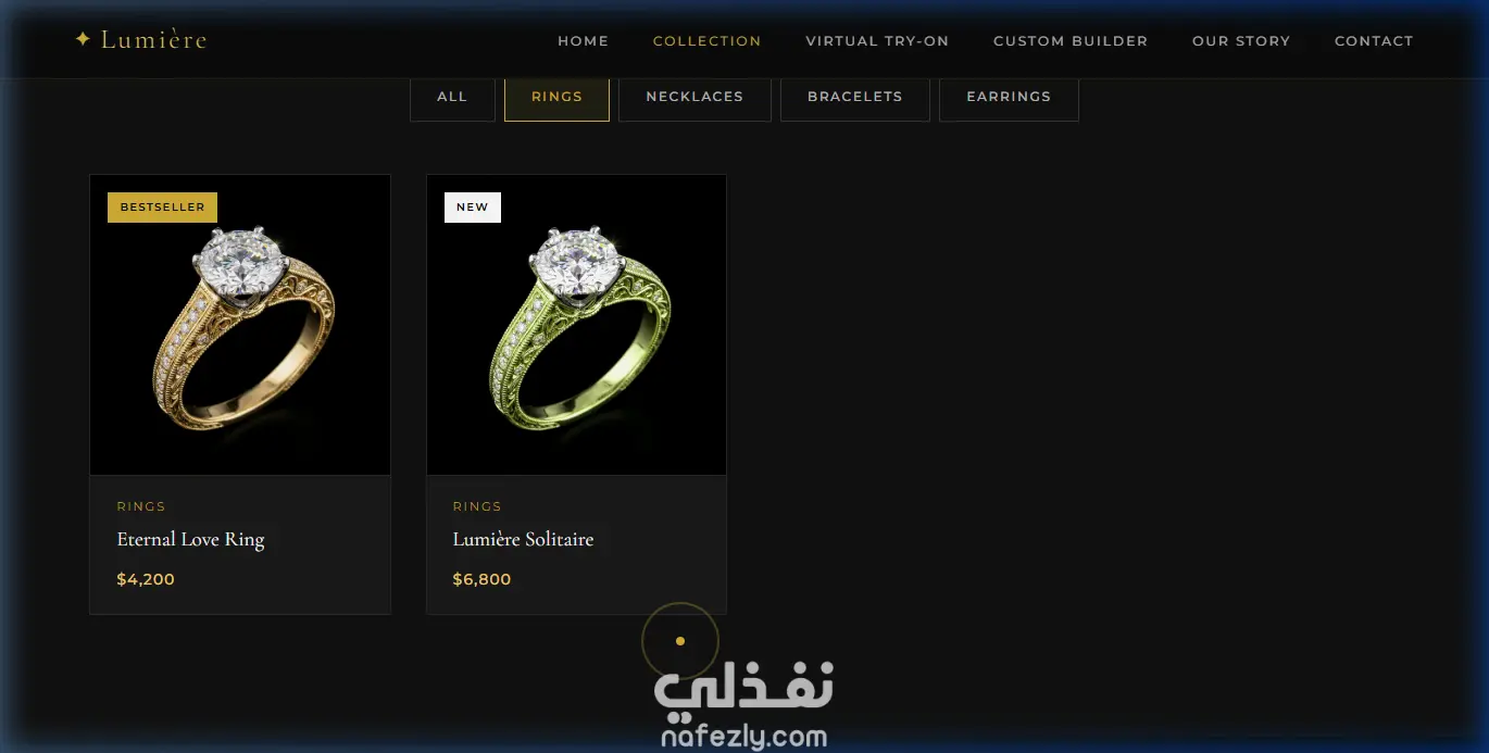 تصميم موقع ويب فاخر لعرض وبيع المجوهرات مع تجربة افتراضية للخواتم