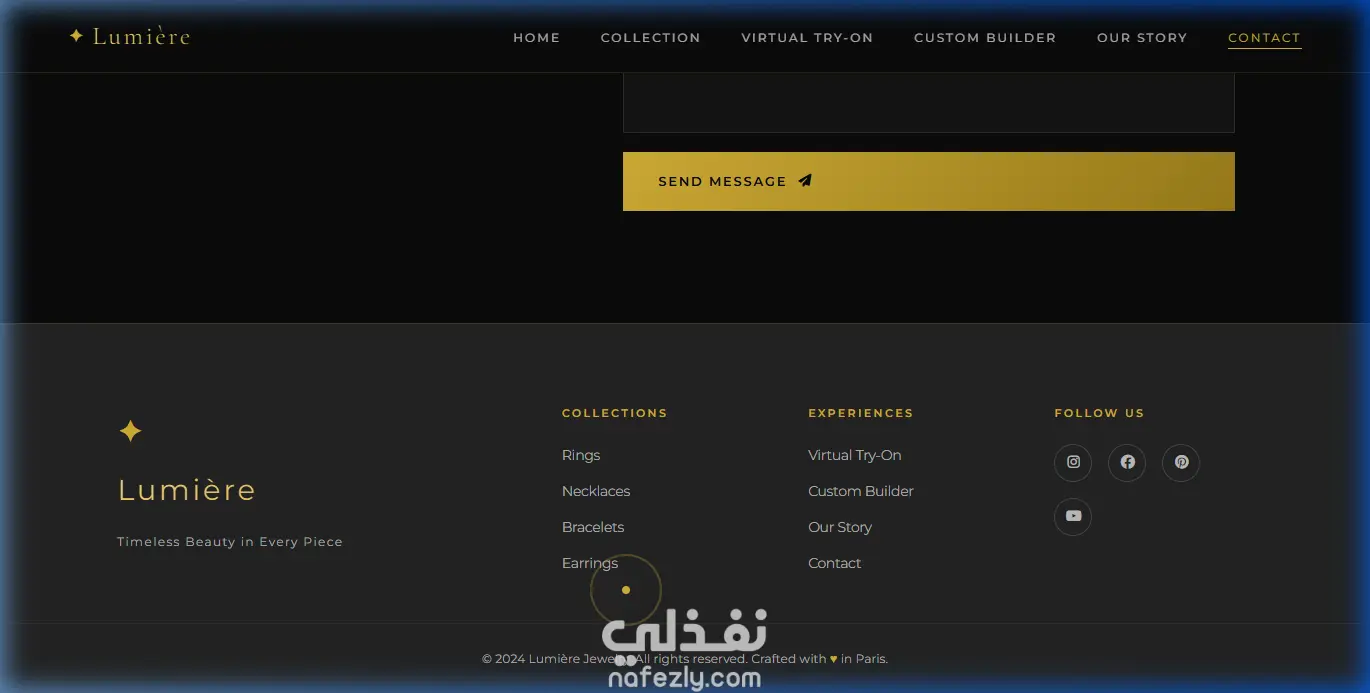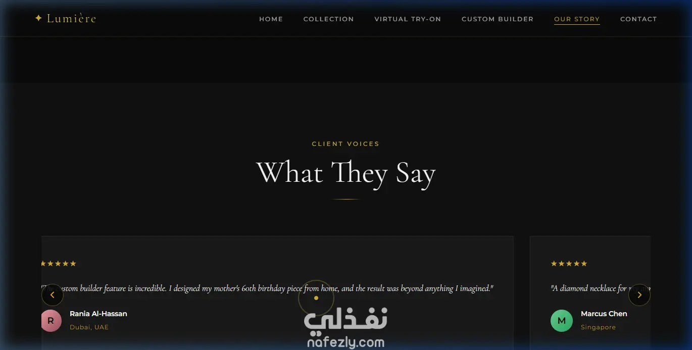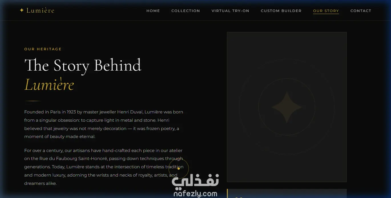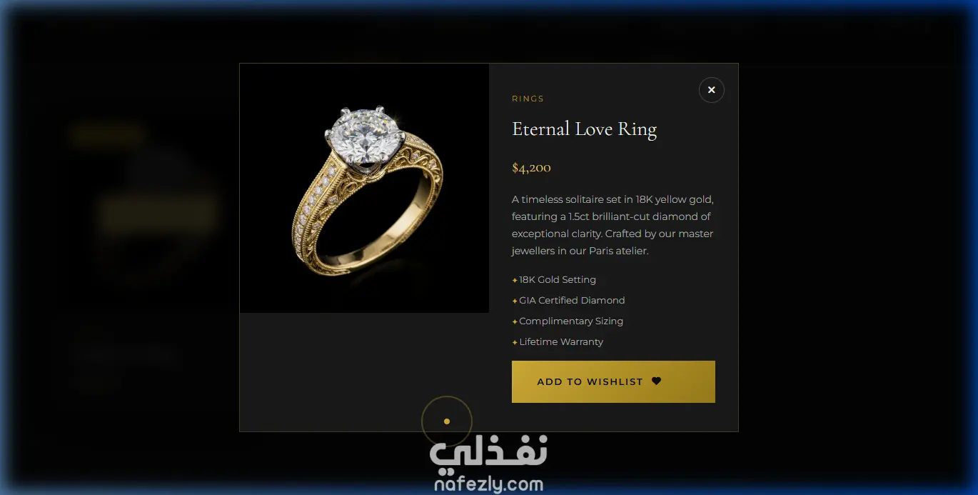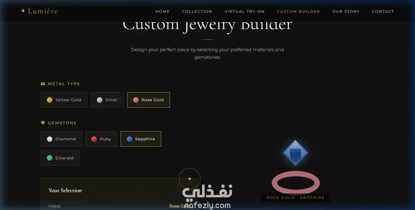 تصميم موقع ويب فاخر لعرض وبيع المجوهرات مع تجربة افتراضية للخواتم