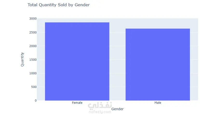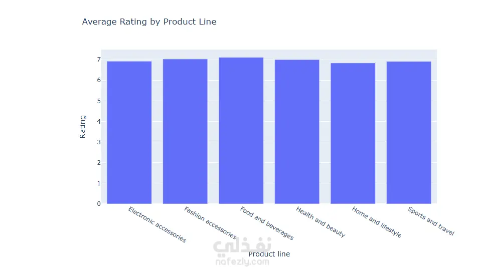 تصوير البيانات (Data Visualization): استخدام مكتبة Plotly لإنشاء رسوم بيانية تفاعلية، مثل تحليل كمية المبيعات حسب النوع (Gender)، ومتوسط التقييمات لكل خط إنتاج (Product Line).