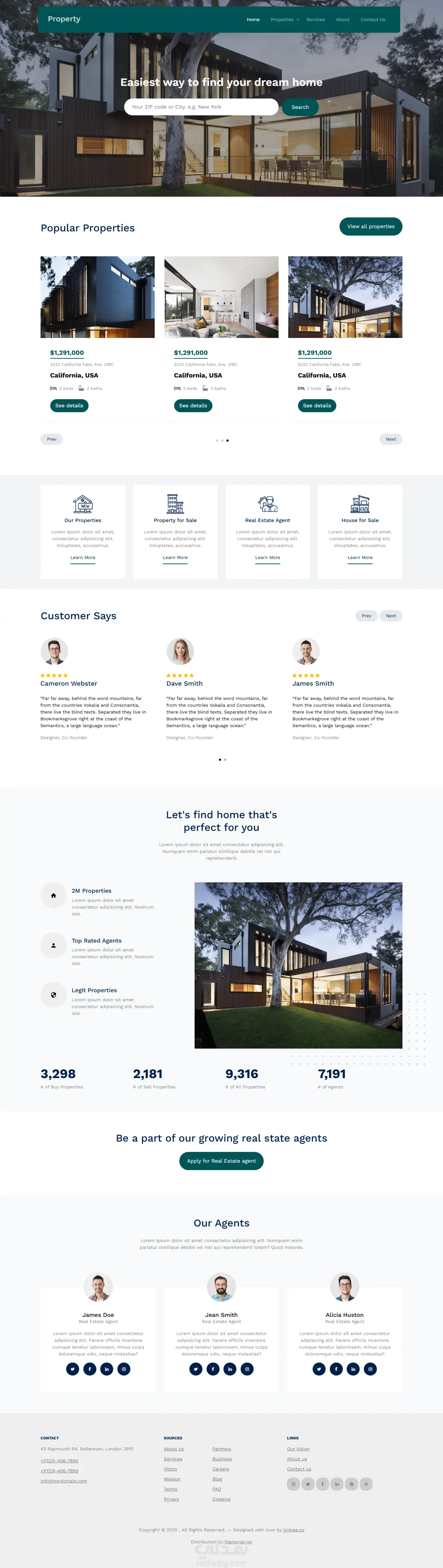 هذا الموقع تم إنشاؤه بستخدام html,css,js,bootstrap يوج داخل هذا الموقع صور للعقار مع الموقع والسعر يوجد ايقونات متحركة مع وجود تقيمات العملاء للموقع