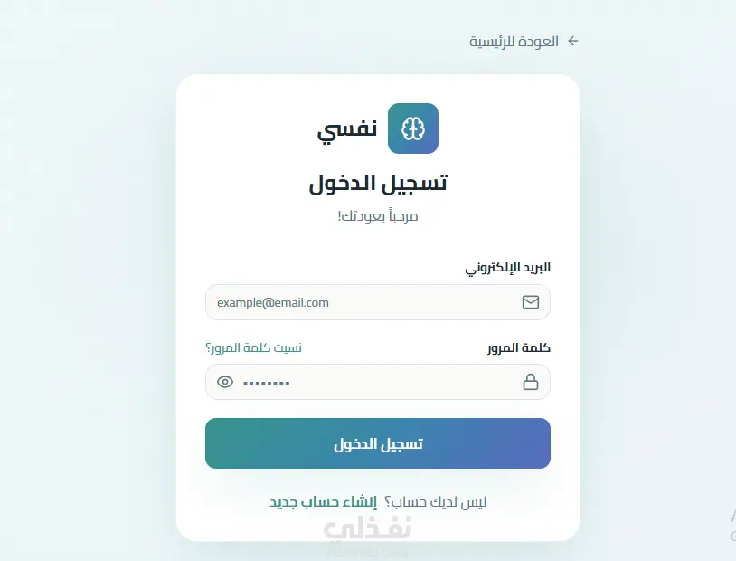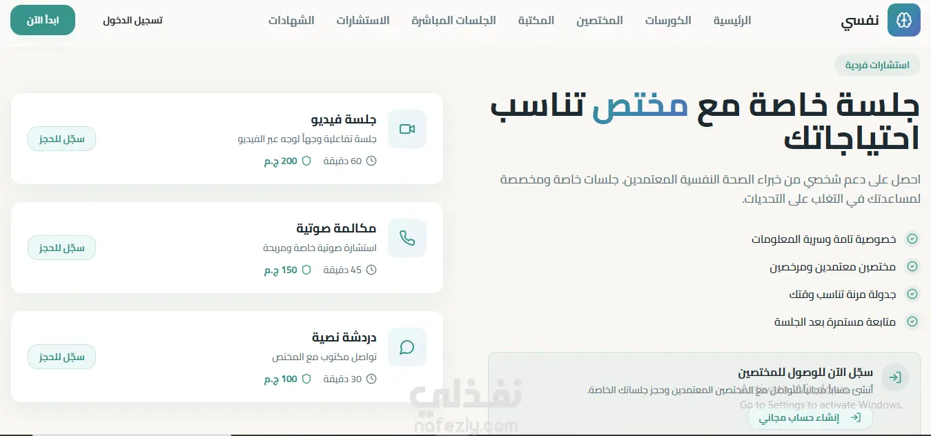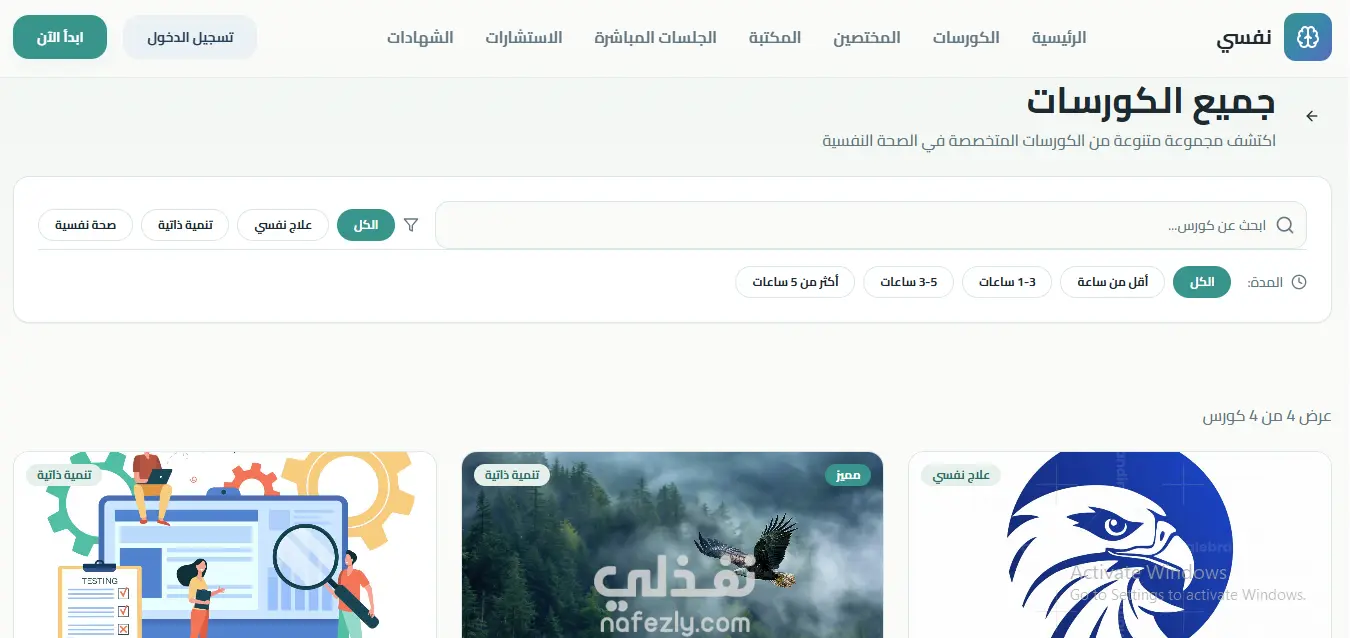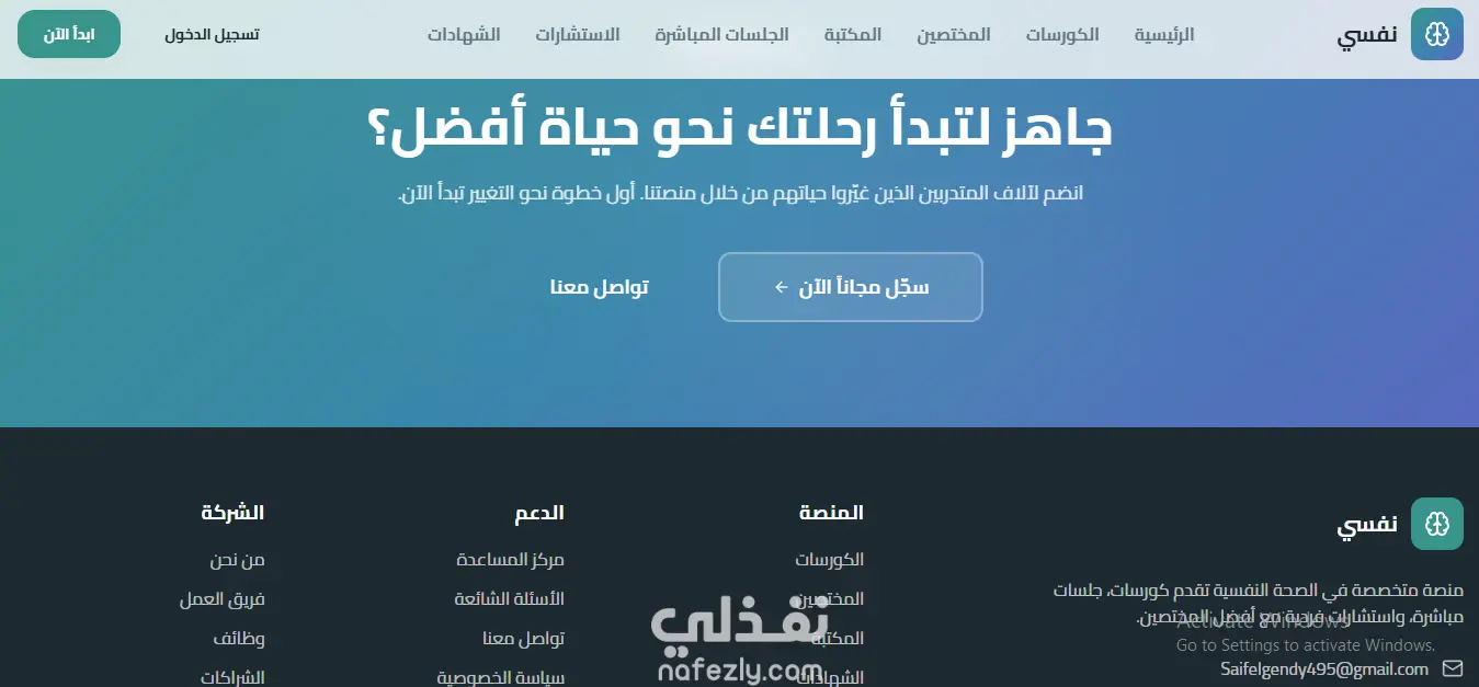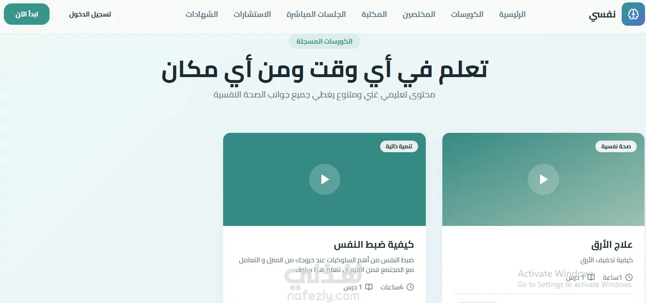 مشروع "نفسي" هو منصة ويب للصحة النفسية تقدم كورسات، جلسات مباشرة، واستشارات فردية للمستخدمين.