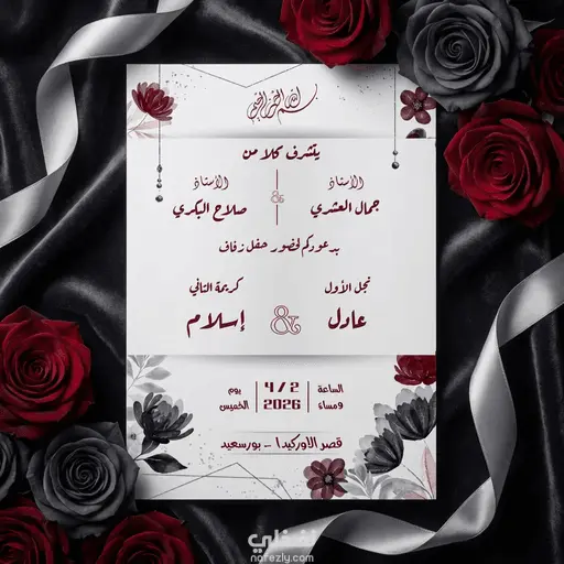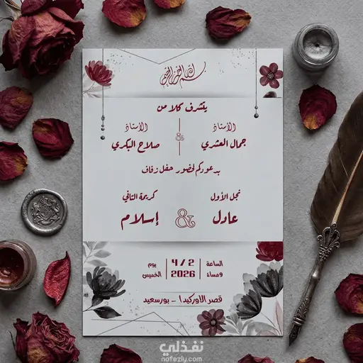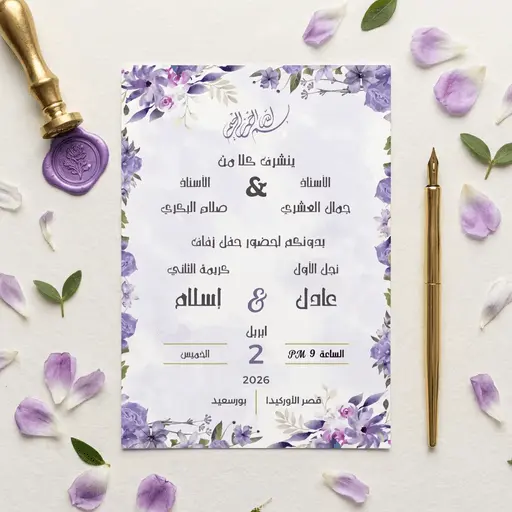 تناغم الألوان: استخدام لوحات ألوان مدروسة (مثل البنفسجي الملكي، الأخضر الزيتوني، والأحمر الداكن) لإضفاء روح للمناسبة.