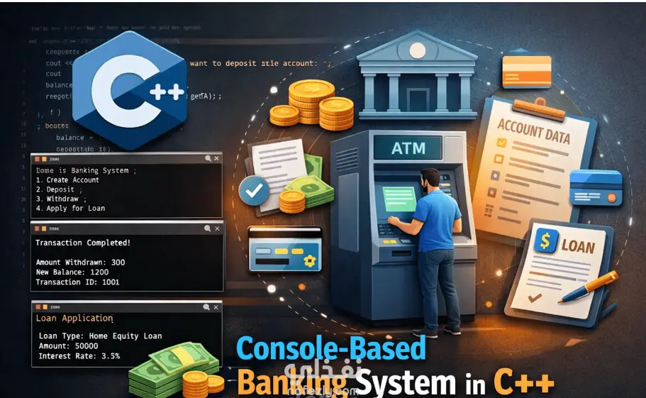 تم تطوير نظام بنكي يعمل عبر واجهة السطر البرمجي (Console) باستخدام لغة ++C، يتيح للمستخدمين إنشاء وإدارة الحسابات المصرفية، وإجراء المعاملات المالية مثل الإيداع والسحب والتحويل. يتضمن النظام خاصية التقدم بطلب للحصول على قروض وحساب أقساطها بدقة، مع إمكانية تتبع سجل العمليات. تم بناء النظام باستخدام مفاهيم البرمجة كائنية التوجه (OOP)، ويتميز بوجود آليات للتحقق من صحة البيانات المدخلة، وخصائص متقدمة للبحث عن الحسابات.