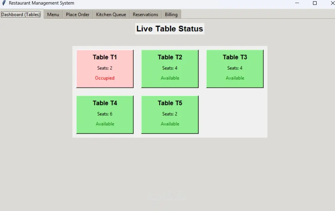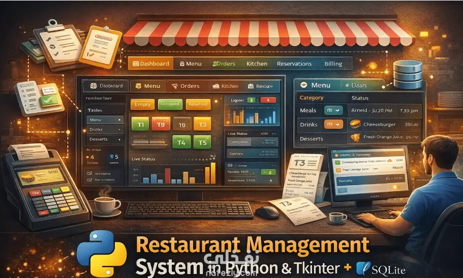 تم تطوير نظام متكامل لإدارة المطاعم باستخدام لغة Python ومكتبة Tkinter لتصميم واجهات المستخدم، مع الاعتماد على قاعدة بيانات SQLite لإدارة البيانات بكفاءة. يتميز النظام بواجهة رسومية سهلة الاستخدام تدعم إدارة عمليات المطعم المختلفة، بما في ذلك: نظام توثيق وتسجيل دخول المستخدمين، إدارة قوائم الطعام، تسجيل الطلبات، مراقبة طابور التجهيز في المطبخ، وحجز الطاولات. كما يوفر النظام ميزات الفوترة وإصدار الفواتير، مع لوحة تحكم (Dashboard) للمديرين تُحدث بياناتها فورياً لمتابعة سير العمل في الوقت الفعلي.