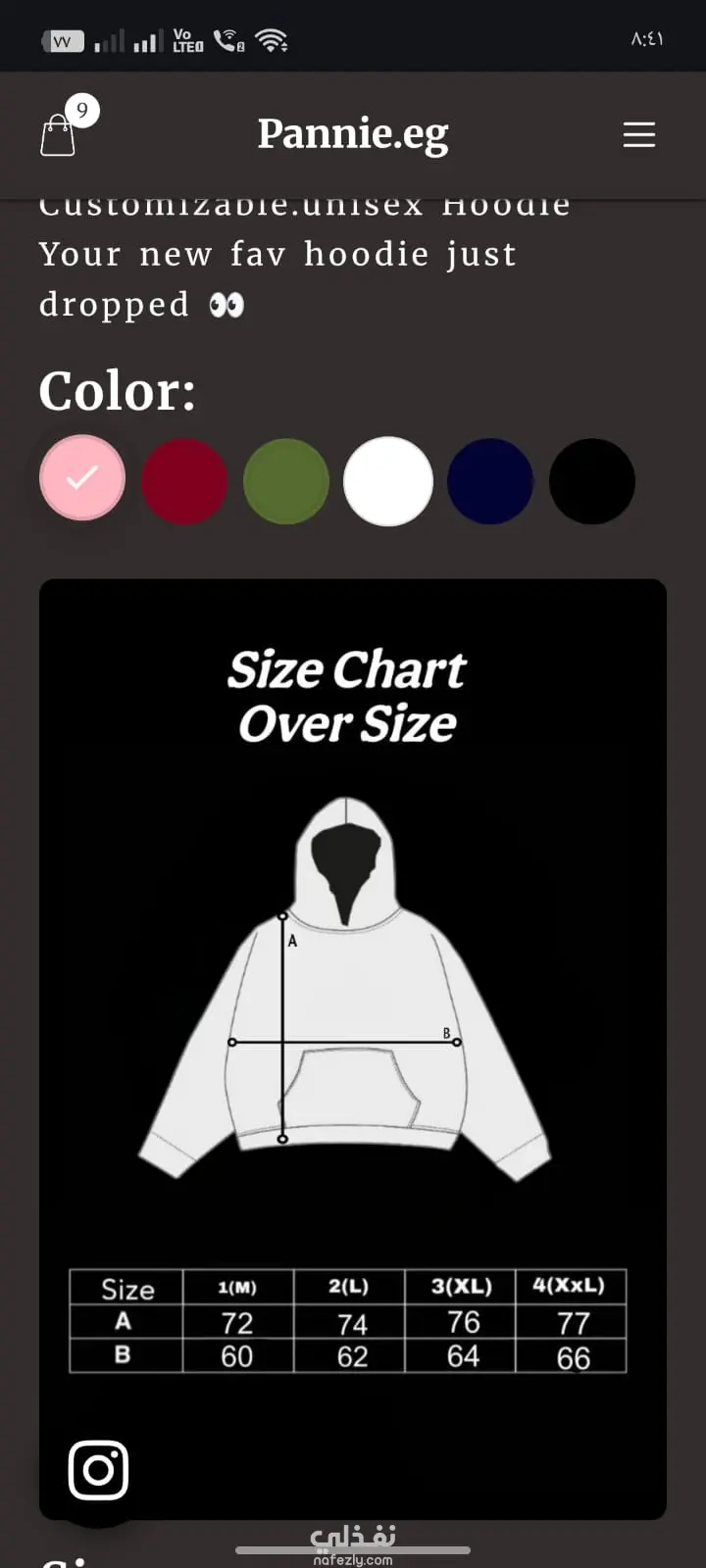 * صفحة خاصة بكل منتج تحتوي على المقاسات والتفاصيل