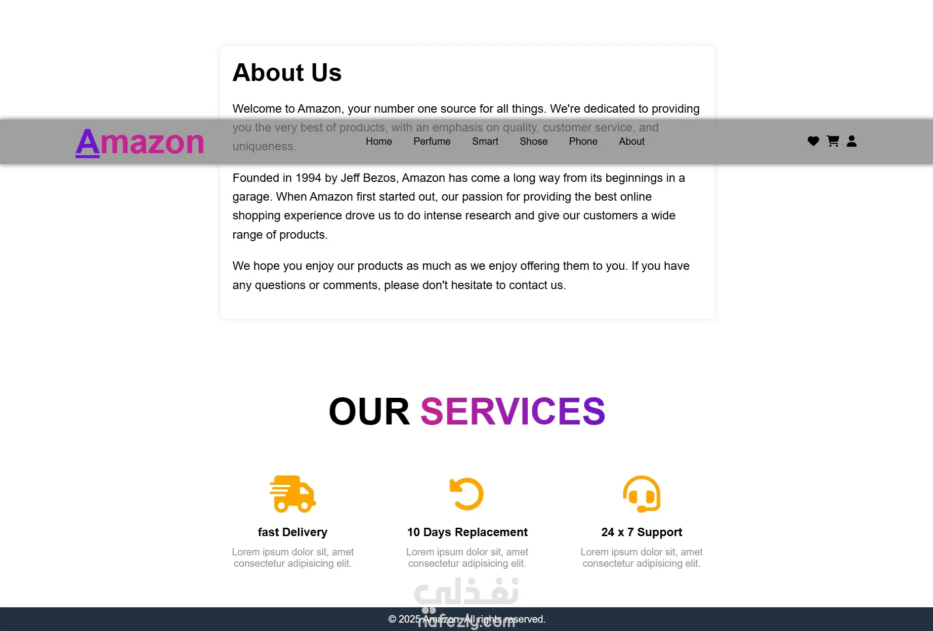 بناءً على خبرتي في تطوير المواقع، أقدم لك هذا المشروع (Amazon Store Clone) كنموذج لما يمكنني تنفيذه لعلامتك التجارية، مع الالتزام بأعلى معايير الجودة البرمجية.