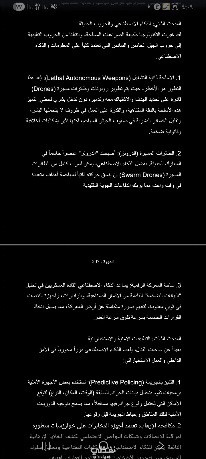 التشريعات والأخلاقيات: مناقشة الأطر القانونية الدولية المطلوبة لحوكمة استخدام الذكاء الاصطناعي في المجالات العسكرية والأمنية.