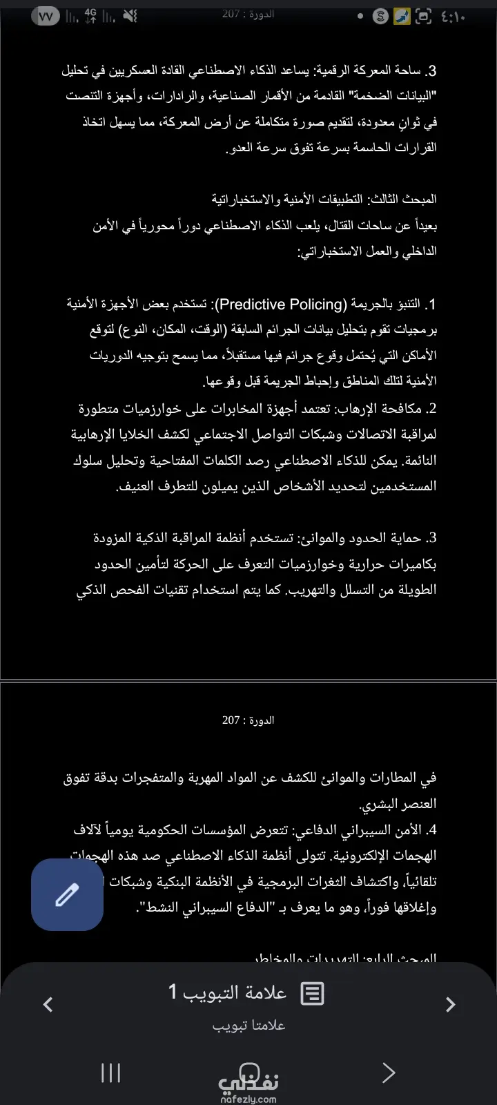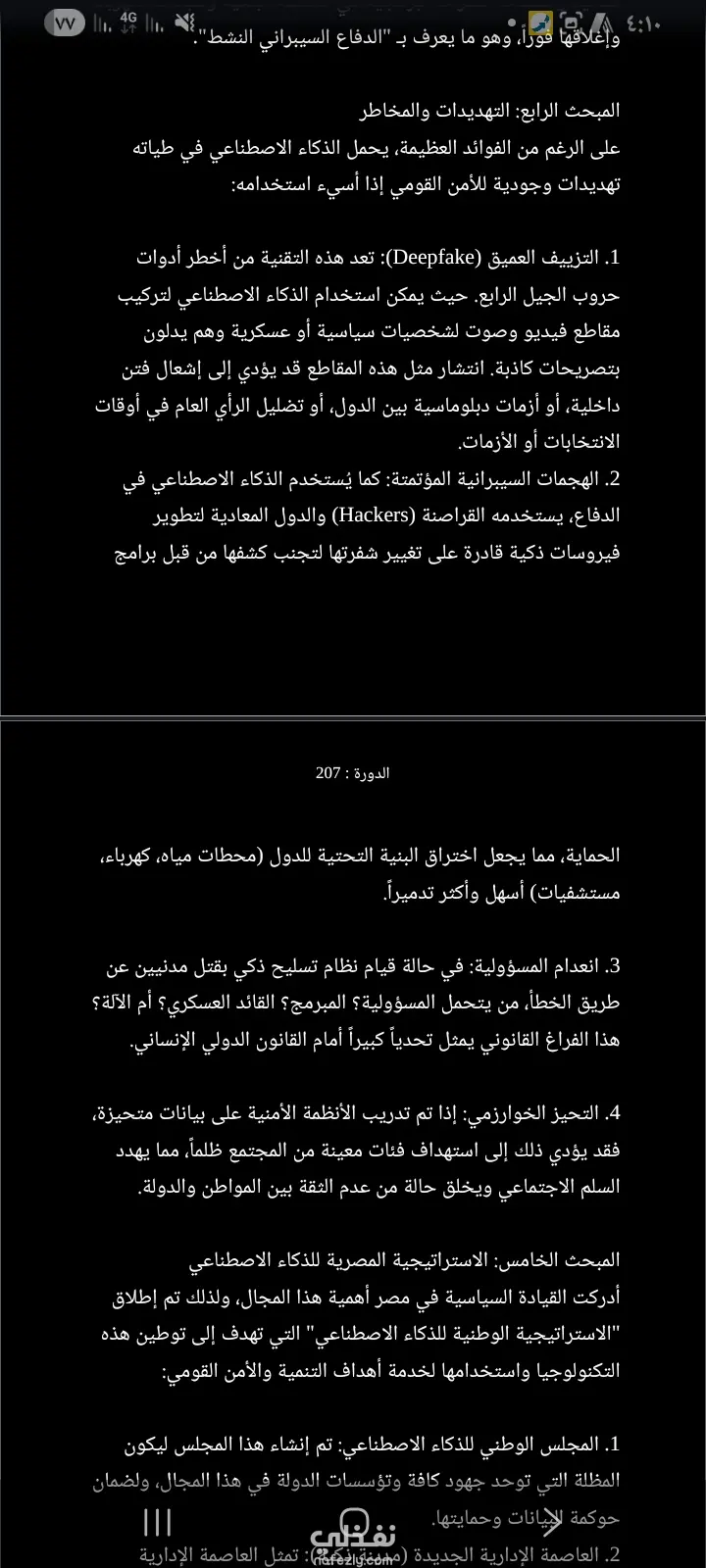 تطبيقات الذكاء الاصطناعي الدفاعية: تحليل دور الأنظمة المستقلة، وتحليل البيانات الضخمة في التنبؤ بالأزمات.
