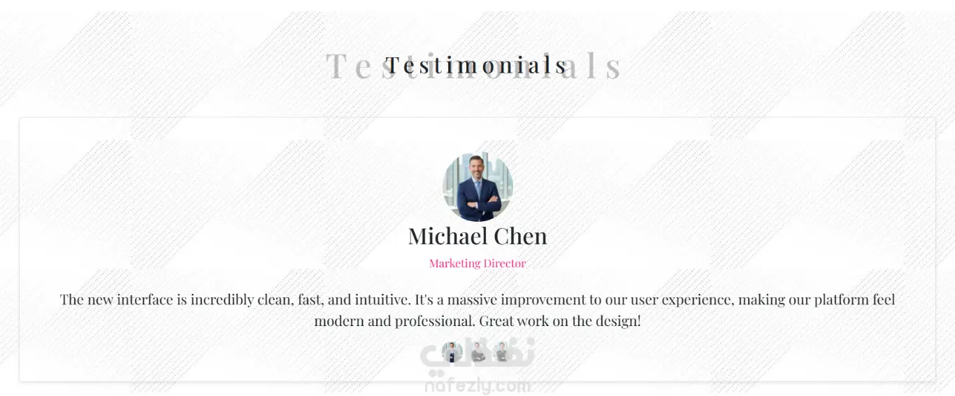 أقسام متكاملة: يتضمن القالب قسماً تعريفياً (About)، عرض الخدمات (Services) بشكل منظم، قسم لآراء العملاء (Testimonials)، ونموذج اتصال (Contact Form) فعال.