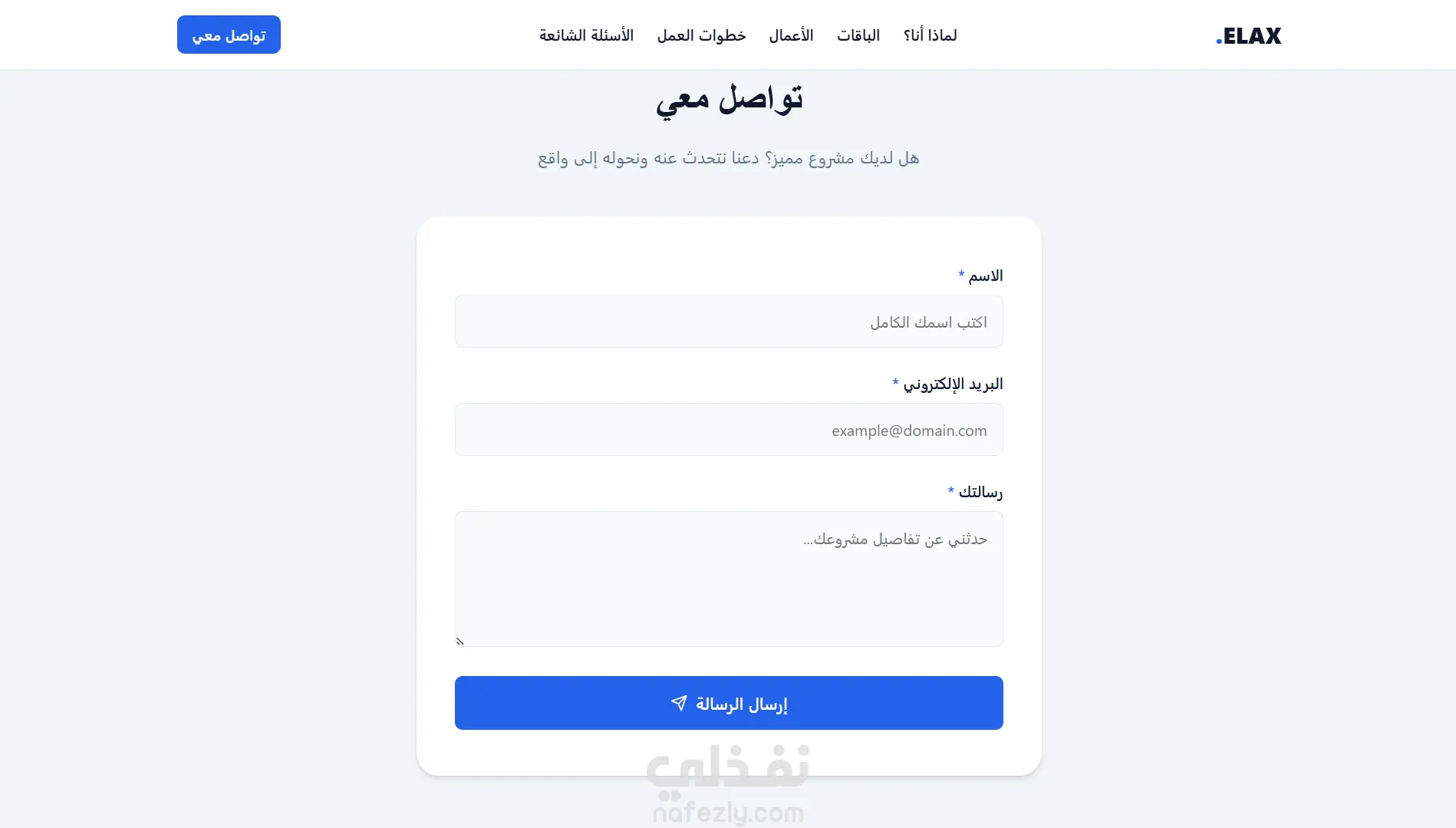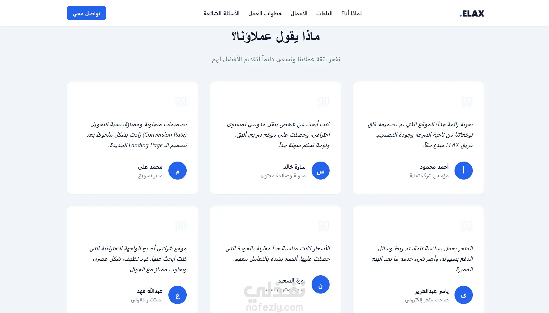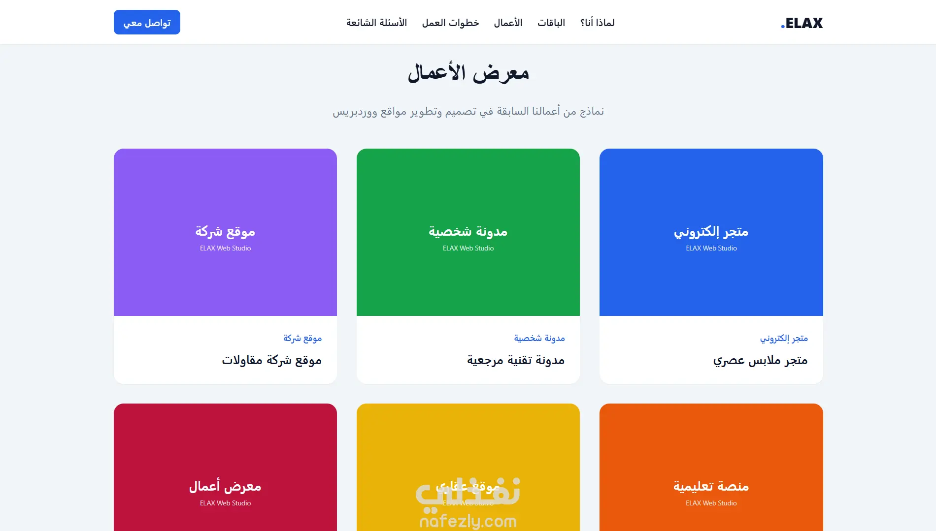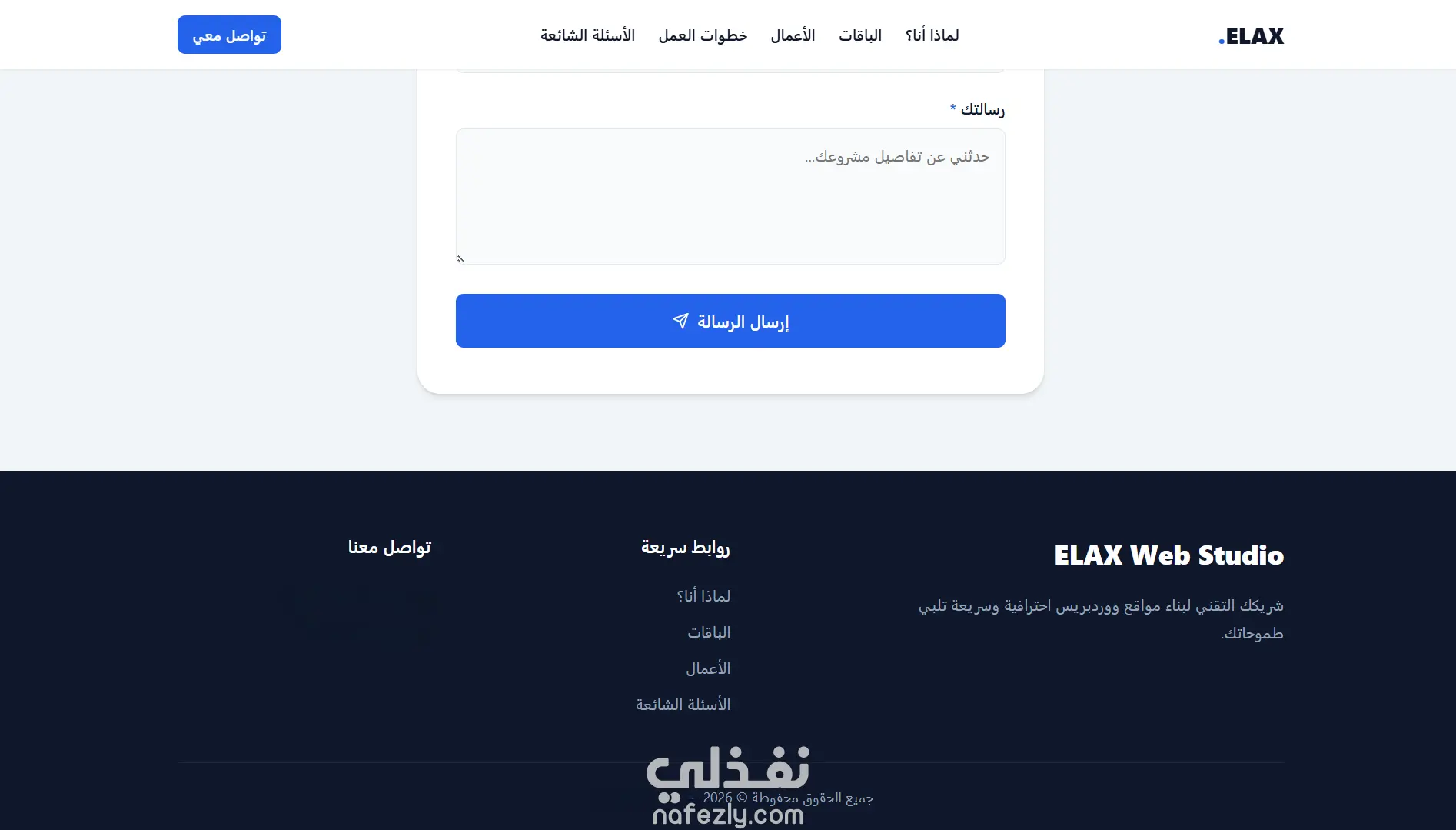 تصميم صفحة هبوط ووردبريس احترافية ومتجاوبة باستخدام Elementor بنفس أسلوب نماذجي وبأقسام جاهزة (باقات، أعمال، خطوات، FAQ، وتواصل).