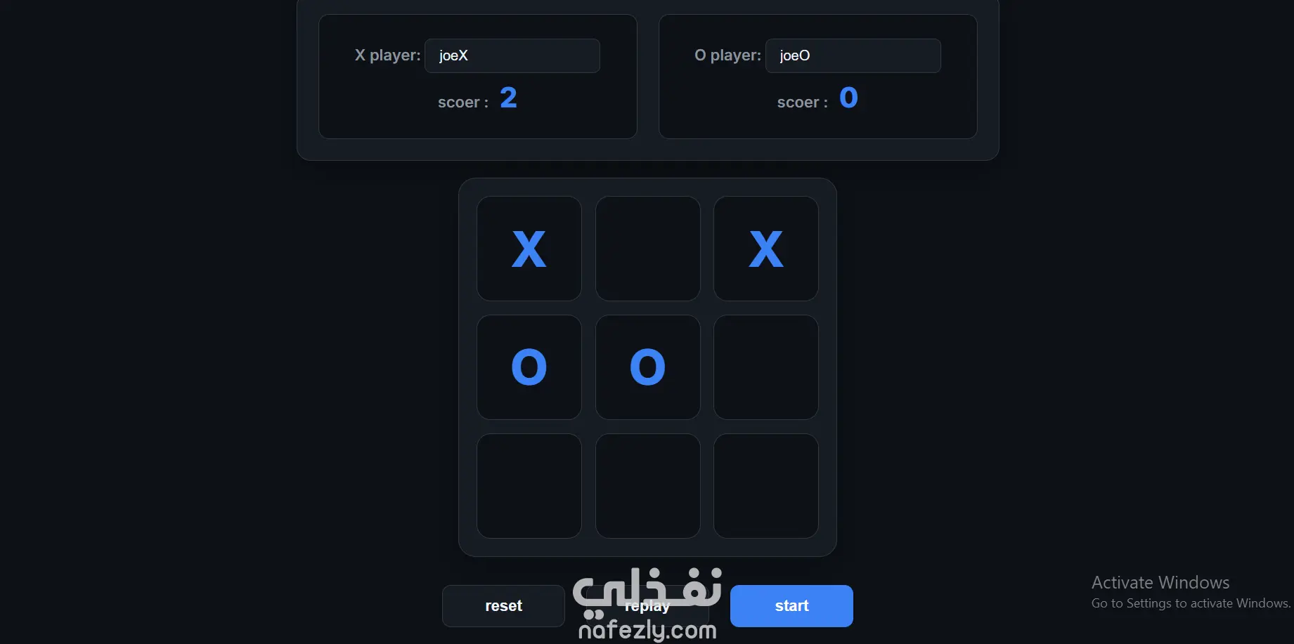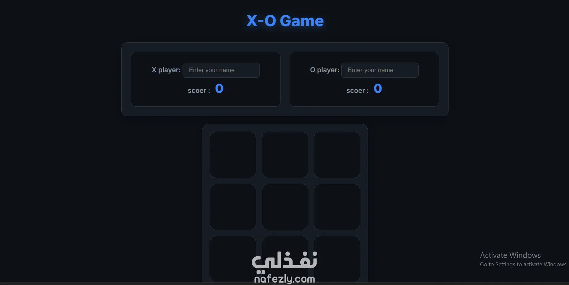 موقع ويب (X-O Game) عبارة عن لعبة تفاعلية (Tic Tac Toe) تتيح للمستخدمين اللعب بطريقة ممتعة وسهلة من خلال واجهة بسيطة وجذابة، مع تجربة استخدام سلسة. التقنيات المستخدمة: HTML5 - CSS3 - JavaScript المميزات: تصميم بسيط ومتجاوب مع مختلف الأجهزة تفاعل مباشر وسريع مع المستخدم عرض نتيجة اللعبة (فوز / خسارة / تعادل) إمكانية إعادة اللعب بسهولة (Restart) واجهة مستخدم سهلة وواضحة تحسين تجربة المستخدم من خلال تصميم تفاعلي وسلس