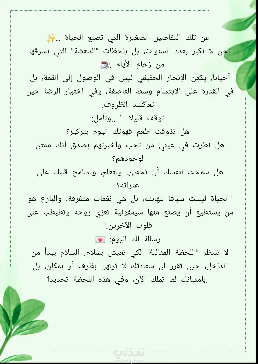 نموذج لمحتوى إبداعي وتأملي يركز على قيمة الامتنان والوعي باللحظة الحالية. تم استخدام أسلوب أدبي رقيق يجمع بين التساؤلات العميقة والرسائل التحفيزية، وهو موجه لجمهور يبحث عن الإلهام والهدوء النفسي عبر منصات التواصل الاجتماعي
