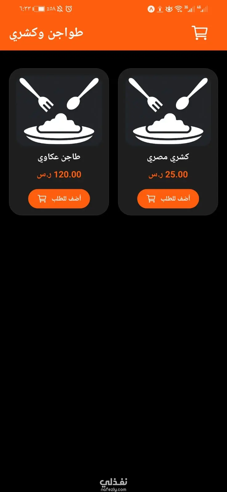 تطبيق ادراه المطعم وطلب الاكل من البيت تصميم هادي ومريح للعين تجربه مستخدم قويه سلة مشتريات منيو معروض بشكل مناسب للمطعم يمكن التعديل عليه ليكون مناسب الك