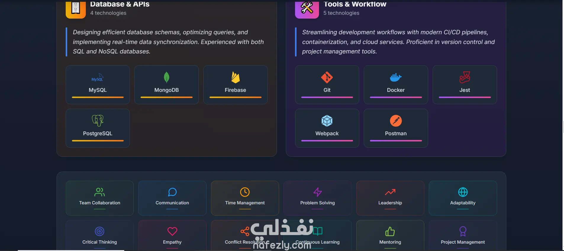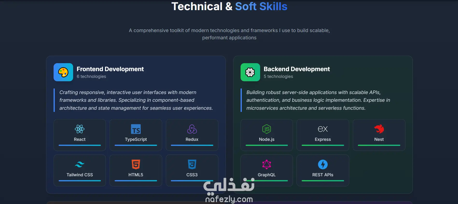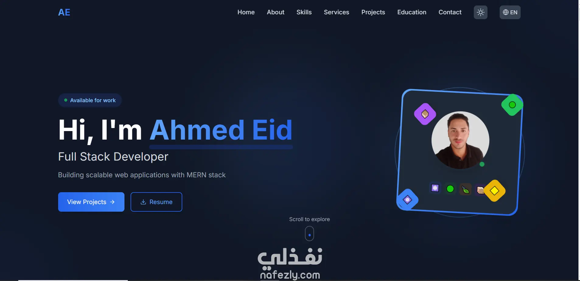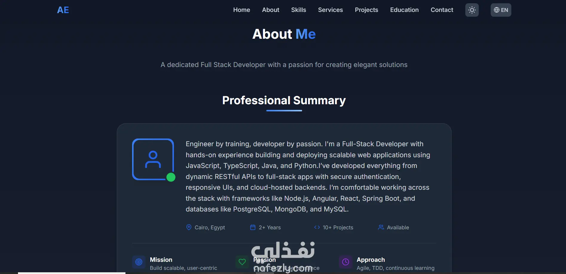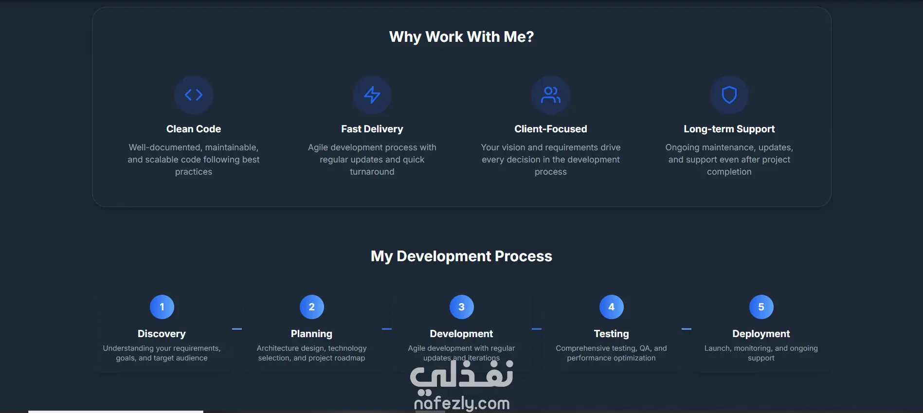 الموقع يعكس هويتي كمطور Full Stack، ويعرض المشاريع بشكل منظم وجذاب يساعد العملاء على استكشاف أعمالي بسهولة.