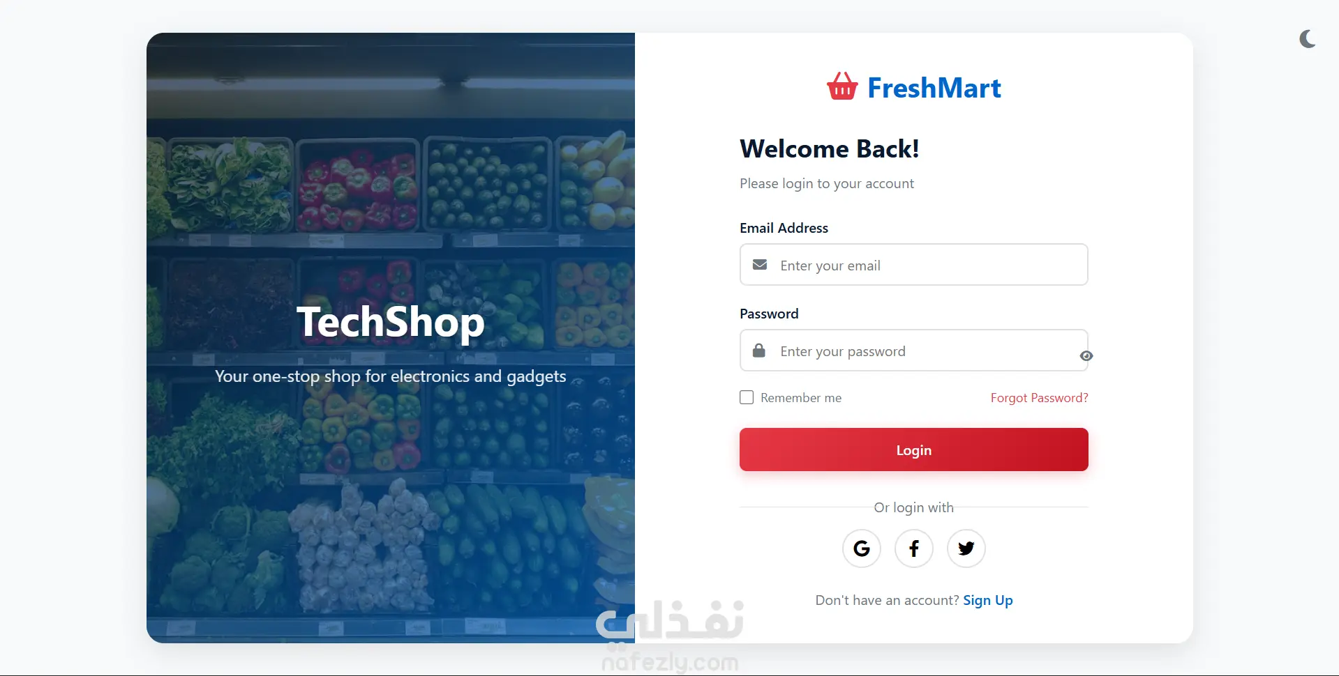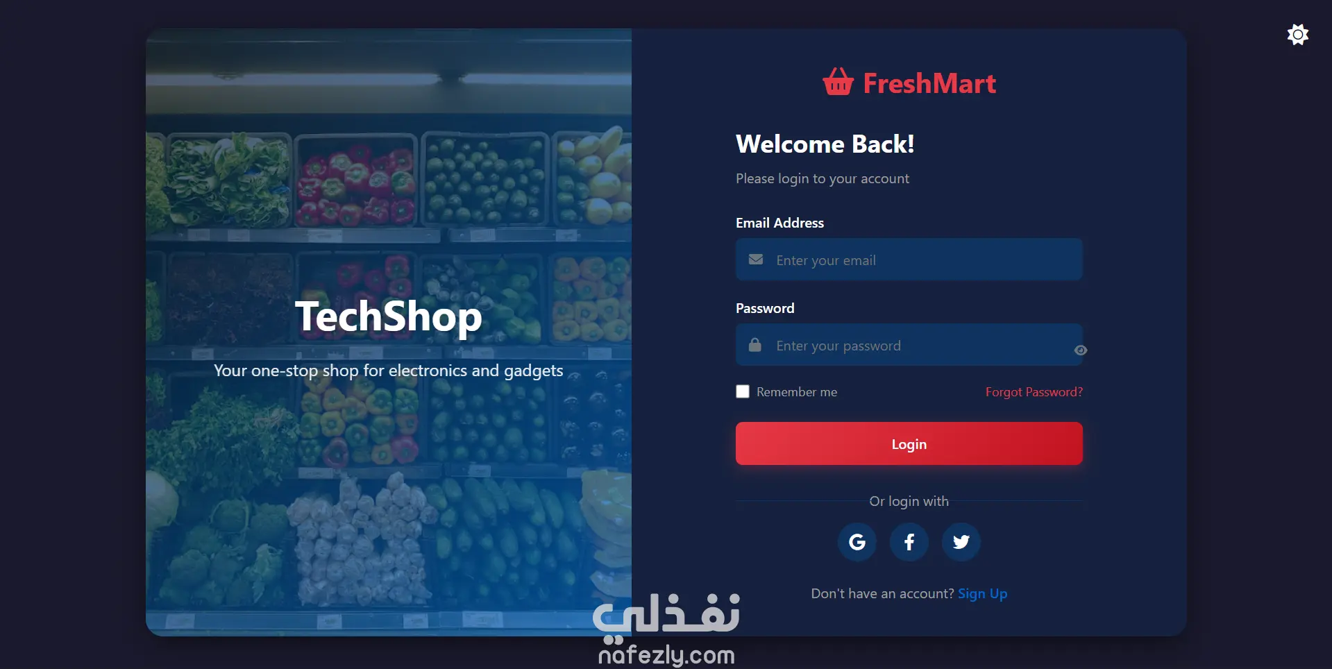 قمت بتصميم لوجو وصفحة تسجيل دخول لموقع techshop وجعلت صفحة تسجيل الدخول مستوحاة من اللوجو وحافظت علي هوية اللوجو بالوان منسقه ومرتبة وصفحة منظمة