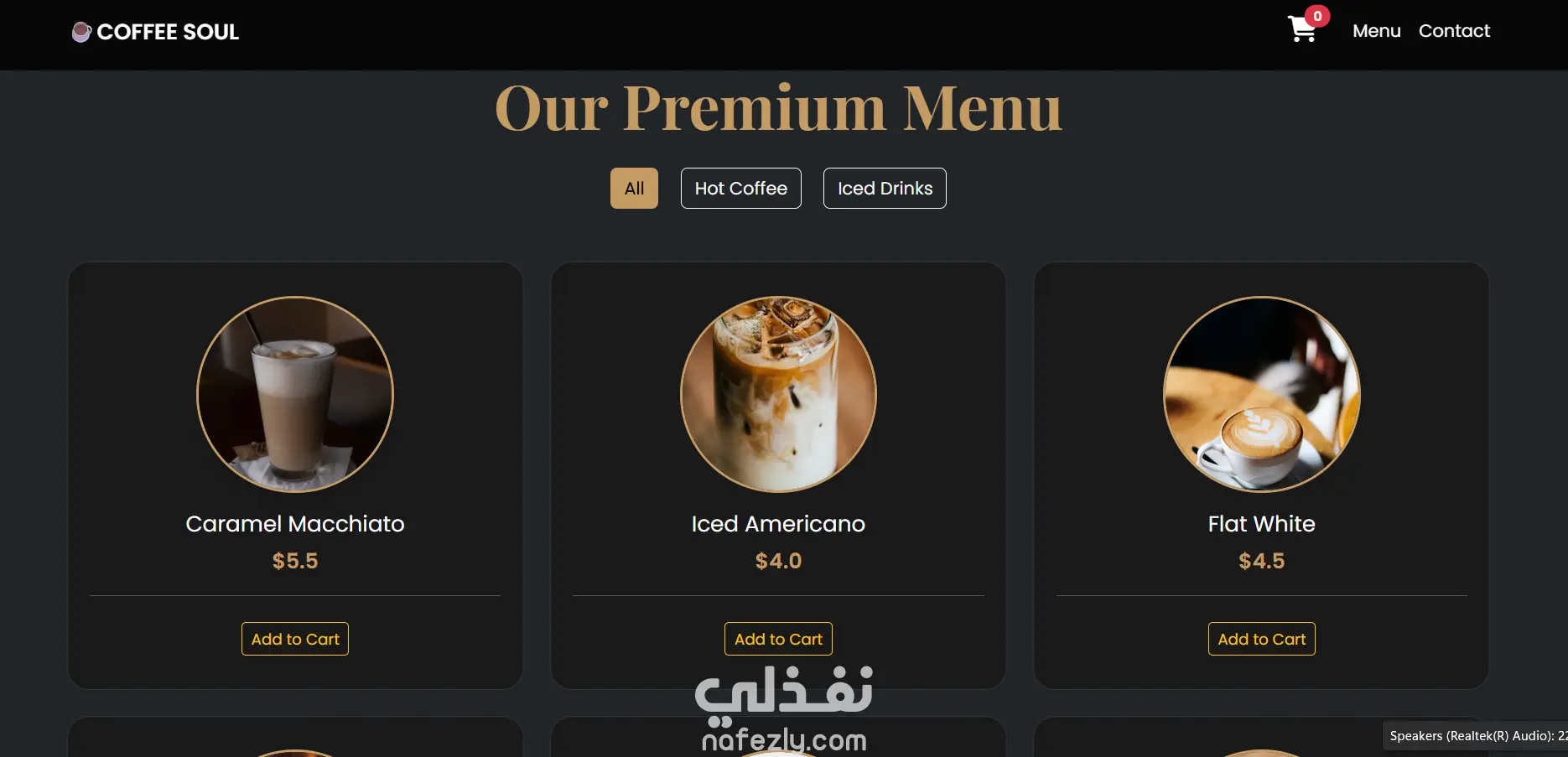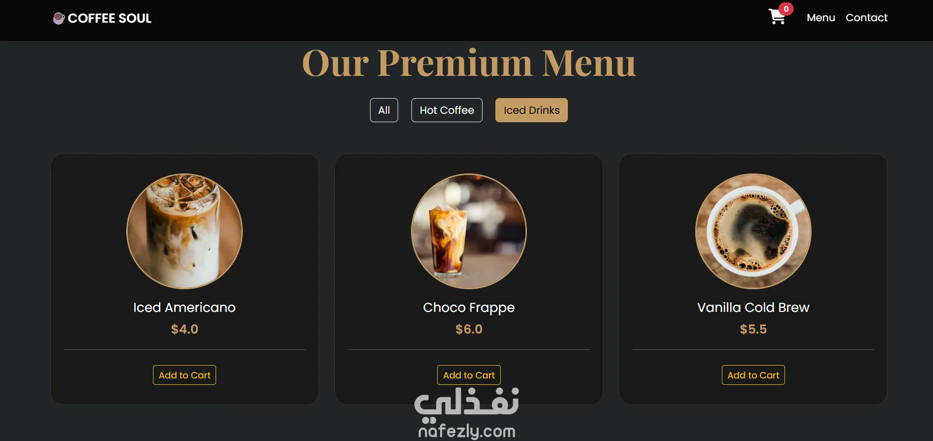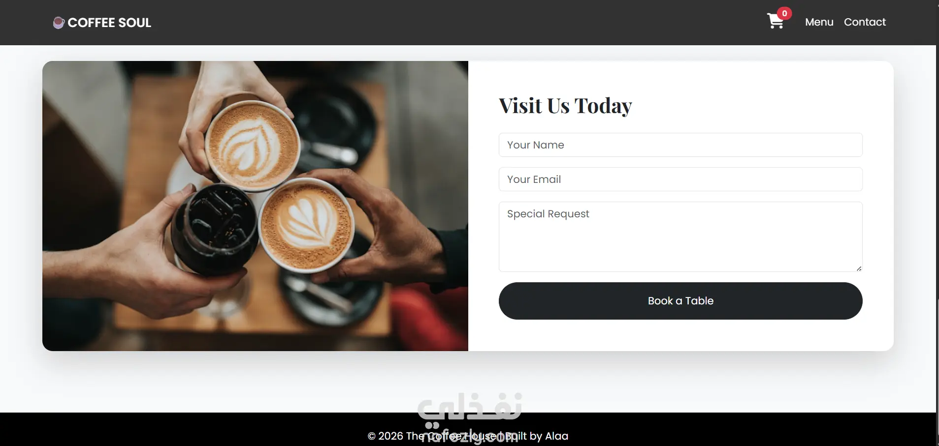 صفحة هبوط (Landing Page) عصرية وجذابة لكافيه مختص.