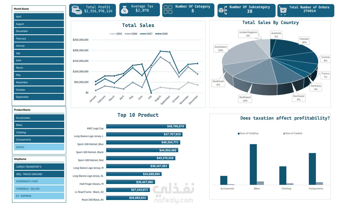 تصميم Dashboard باستخدام Excel لتحليل للمبيعات والأرباح
